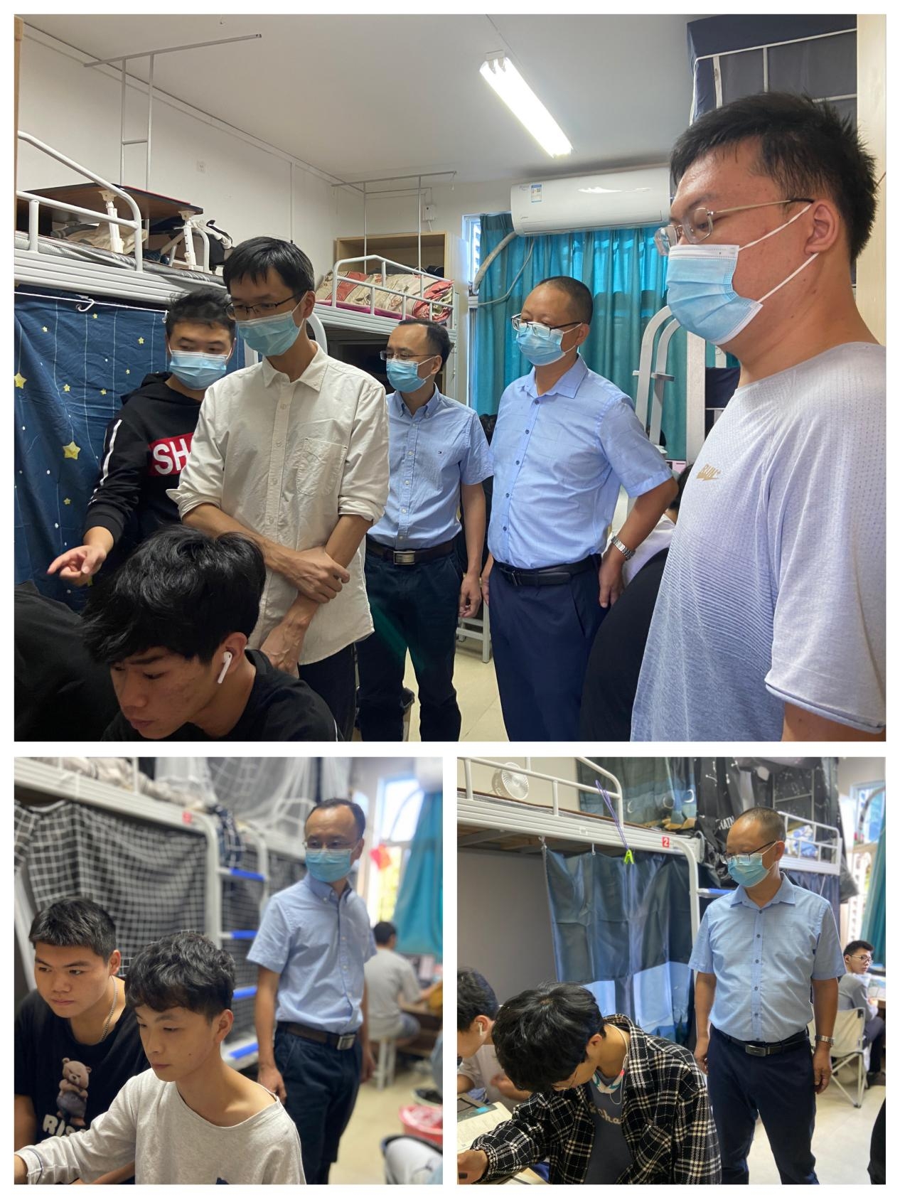 10月24日上午,在郑晓生副校长的带领下,教务处缪佩君副处长和学院院长陈宁华、党总支书记余深焰、学院教研室主任黄键老师和卓皓老师、教学秘书及辅导员老师一同深入学生宿舍楼开展教学巡查活动。巡查发现,全院线上教学秩序井然,老师精神饱满,同学们都能认真完成线上课程。郑晓生副校长细心倾听同学们的上课感受,嘱咐大家要提高安全防范意识,做好个人疫情防护,同时对我院师生积极向上的良好精神风貌给予充分肯定,对学院线上教学开展、教学管理等提出了建议要求,鼓励根据学生现有条件,开展形式多样的教与学。
