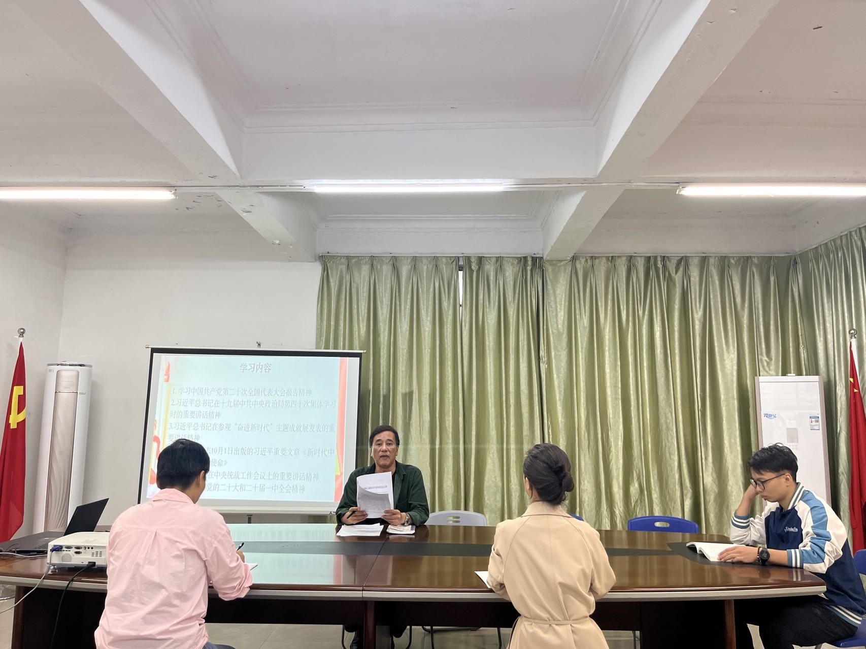最后,陈福榕书记要求,要把学习宣传贯彻党的二十大精神作为当前和今后一个时期的首要政治任务,要认真对照党的二十大报告明确的目标任务,联合学院工作实际,持续深入学习,切实做到学深学透、融会贯通。