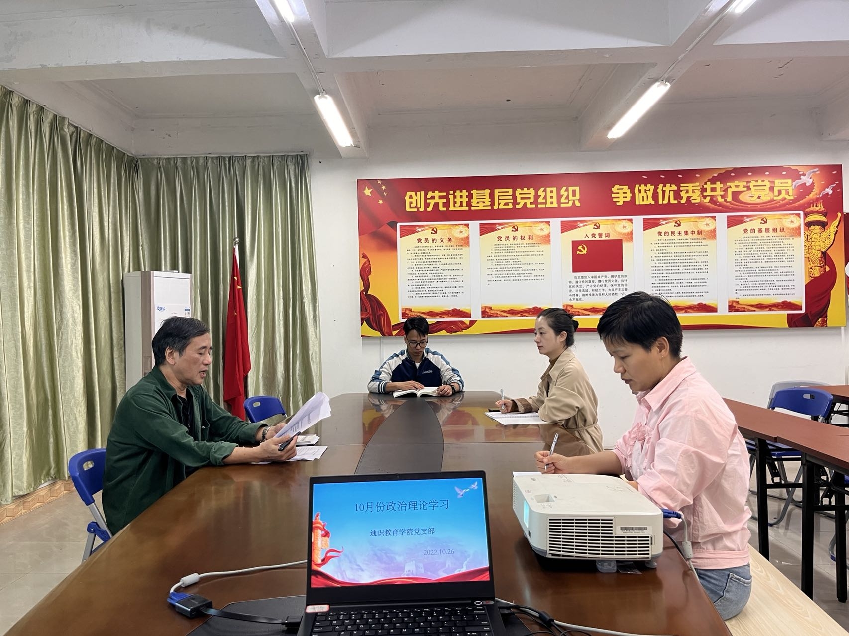 2022年10月26日下午,通识教育学院党支部召开视频会议,会议内容围绕十月份政治理论学习内容展开,会议由陈福榕书记主持。