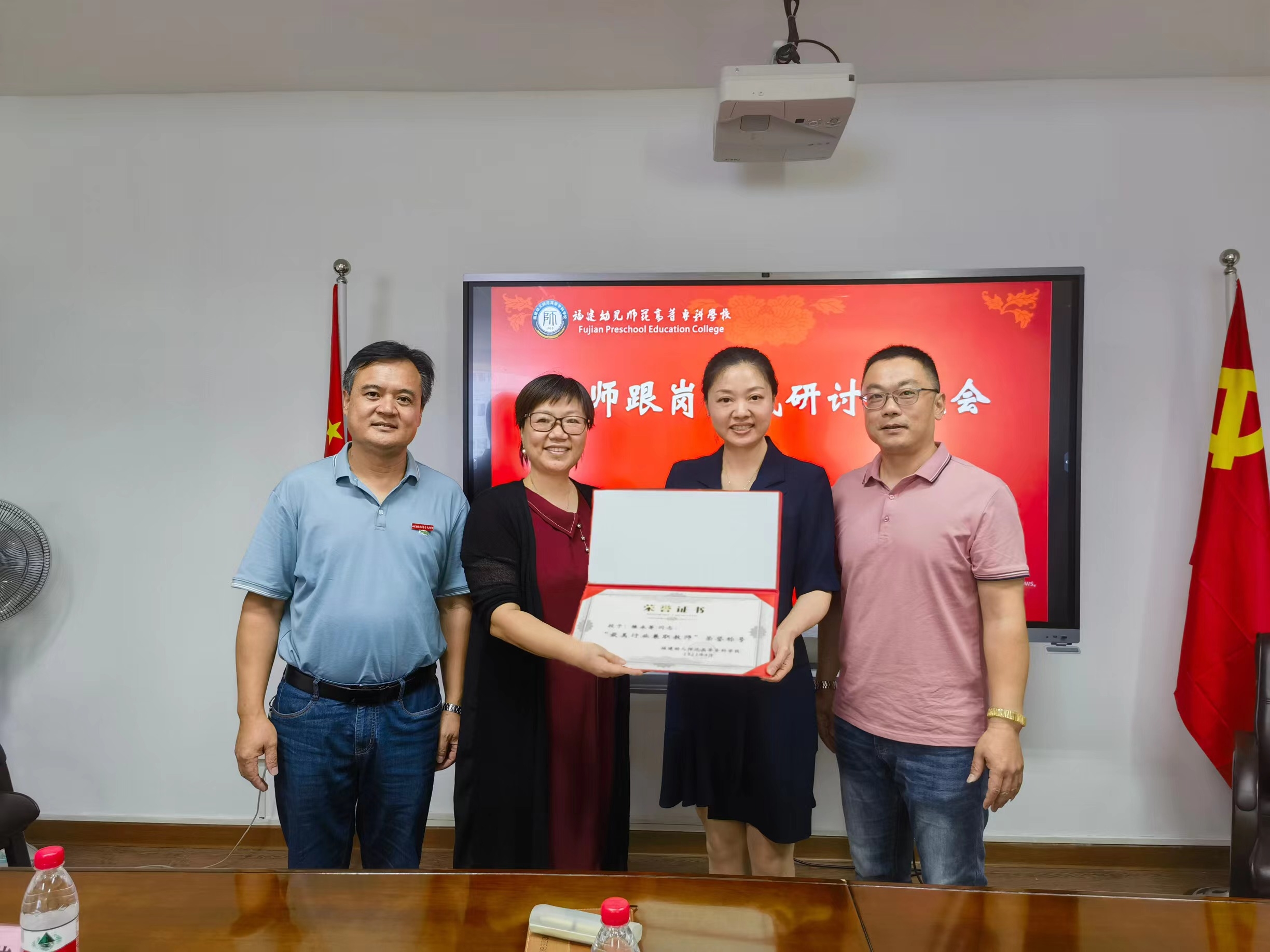 随后,我院领导代表学校为福州市东升小学陈永芳督学颁发"福建幼儿师范高等专科学校最美行业兼职教师"荣誉证书。