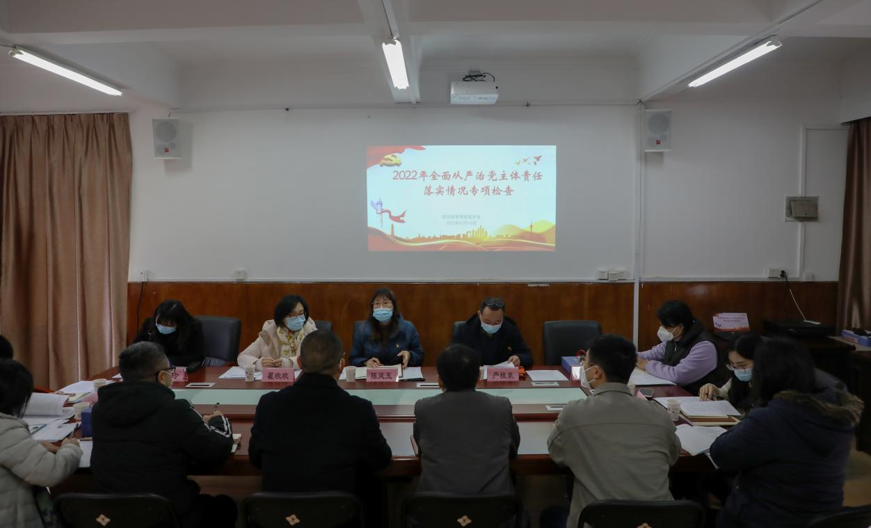 12月15日上午,校党委委员、副校长陈凤玉带领学校党政办、组统部、宣传部、纪委办四个部门人员到信息科学学院开展2022年度全面从严治党主体责任落实情况专项检查和意识形态工作专题督查。