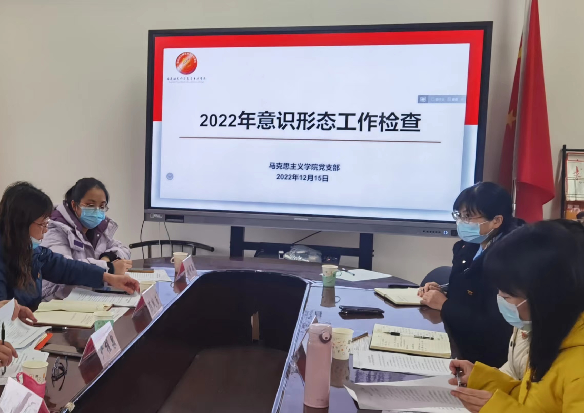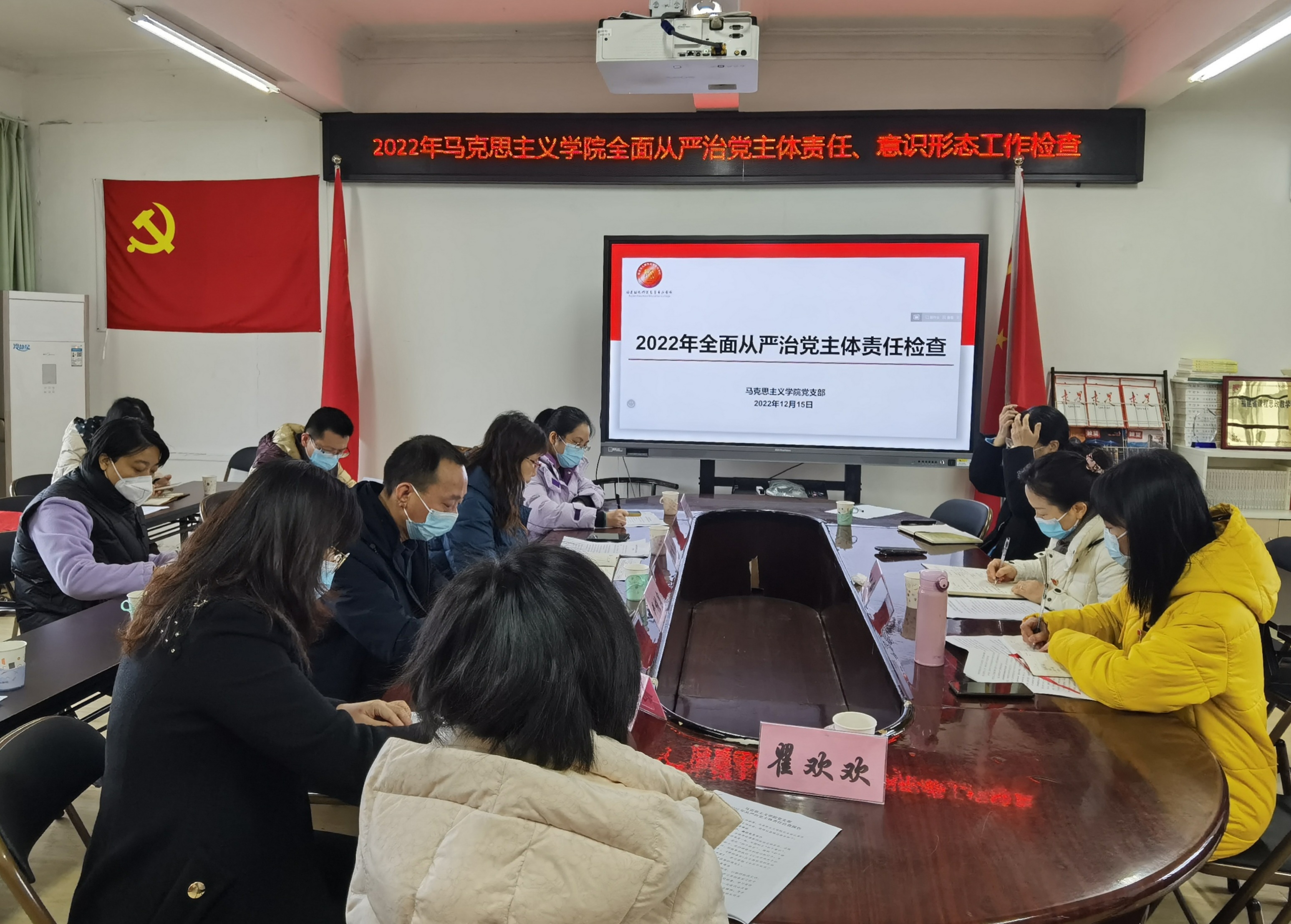 12月15日上午,校党委委员、副校长陈凤玉带领学校党政办、组统部、宣传部、纪委办四部门人员莅临马克思主义学院开展2022年度全面从严治党主体责任落实情况专项检查和意识形态工作专题督查工作。
