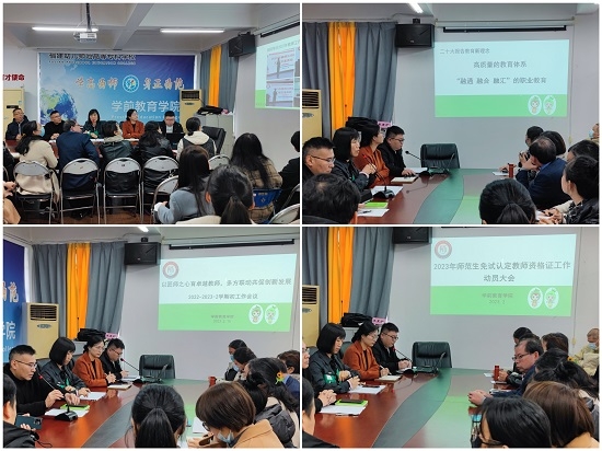 春光复始,万象更新。为明确新学期工作目标和努力方向,确保各项工作开好局,起好步,2023年2月10日上午,学前教育学院在406会议室召开2022-2023学年第二学期期初教职工大会,院领导班子出席,教研室主任、教职工代表、全体行政人员参加本次大会。