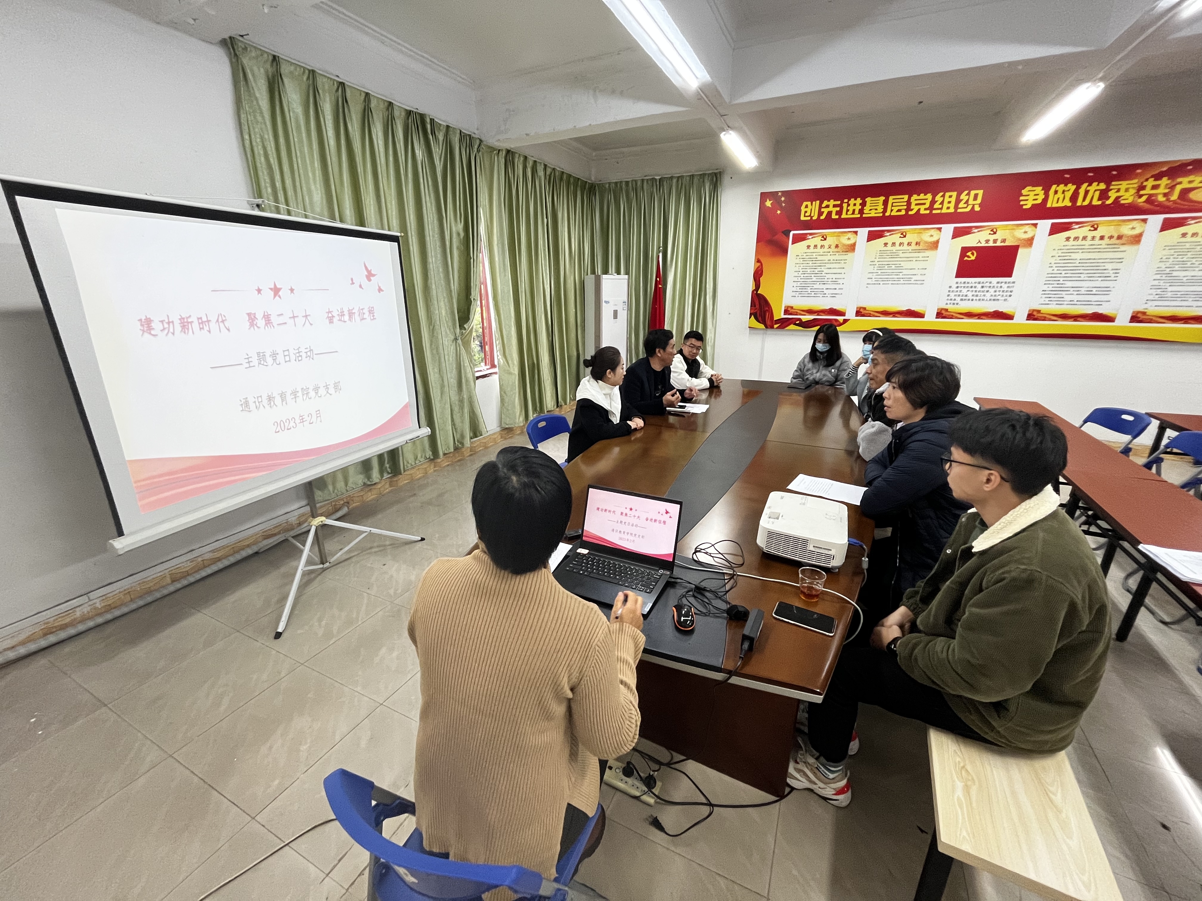 2023年2月10日下午,通识教育学院党支部在系部楼506会议室开展2月份"建功新时代,聚焦二十大,奋进新征程"主题党日活动,会议由陈福榕书记主持,全体党员参加本次学习。