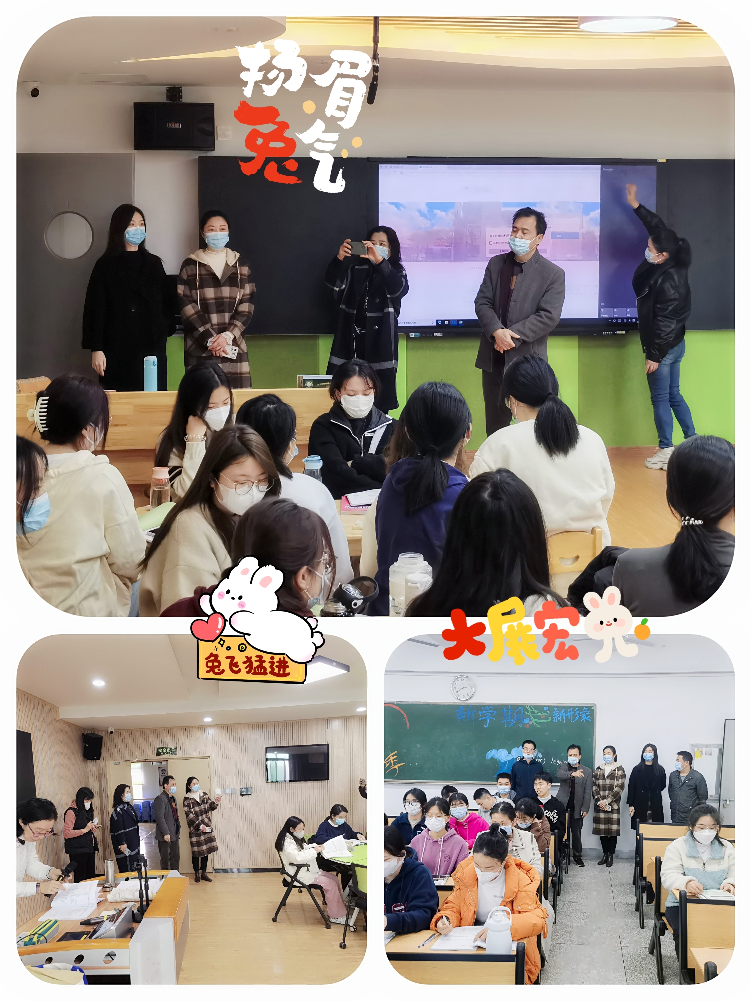 授课教师均能提前到岗,情绪饱满;学生都能按时到教室,上课认真,整体的精神状态良好,课堂气氛活跃。教师充分利用多媒体等教学设备,师生疫情防控落实到位。