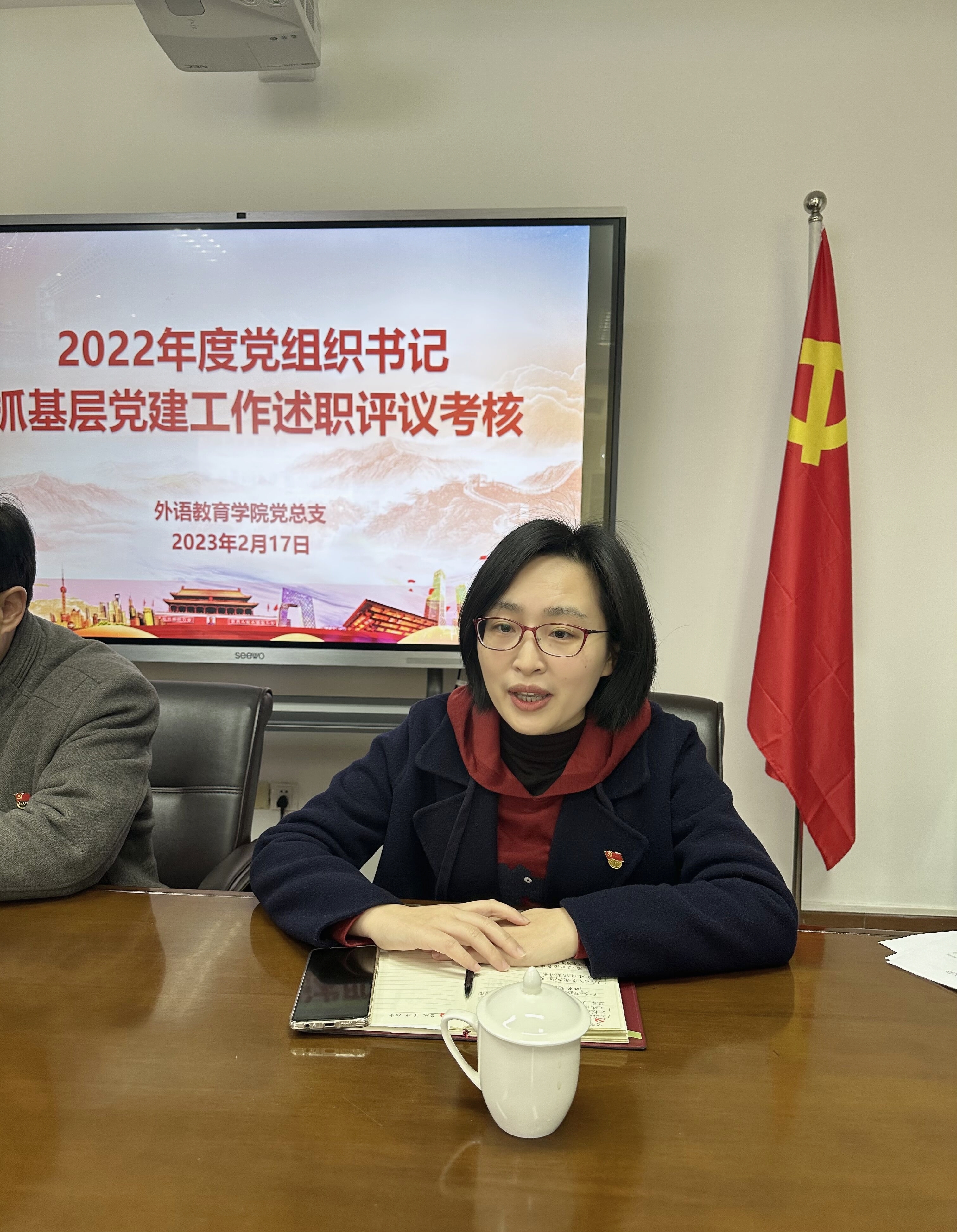 2月17日上午,外语教育学院党总支在金山校区201会议室召开2022年度党组织书记抓基层党建述职评议考核工作会议,组织统战部部长瞿欢欢到会指导。外语教育学院党政班子成员、部分党员教师出席会议,林祥昊书记主持会议。
