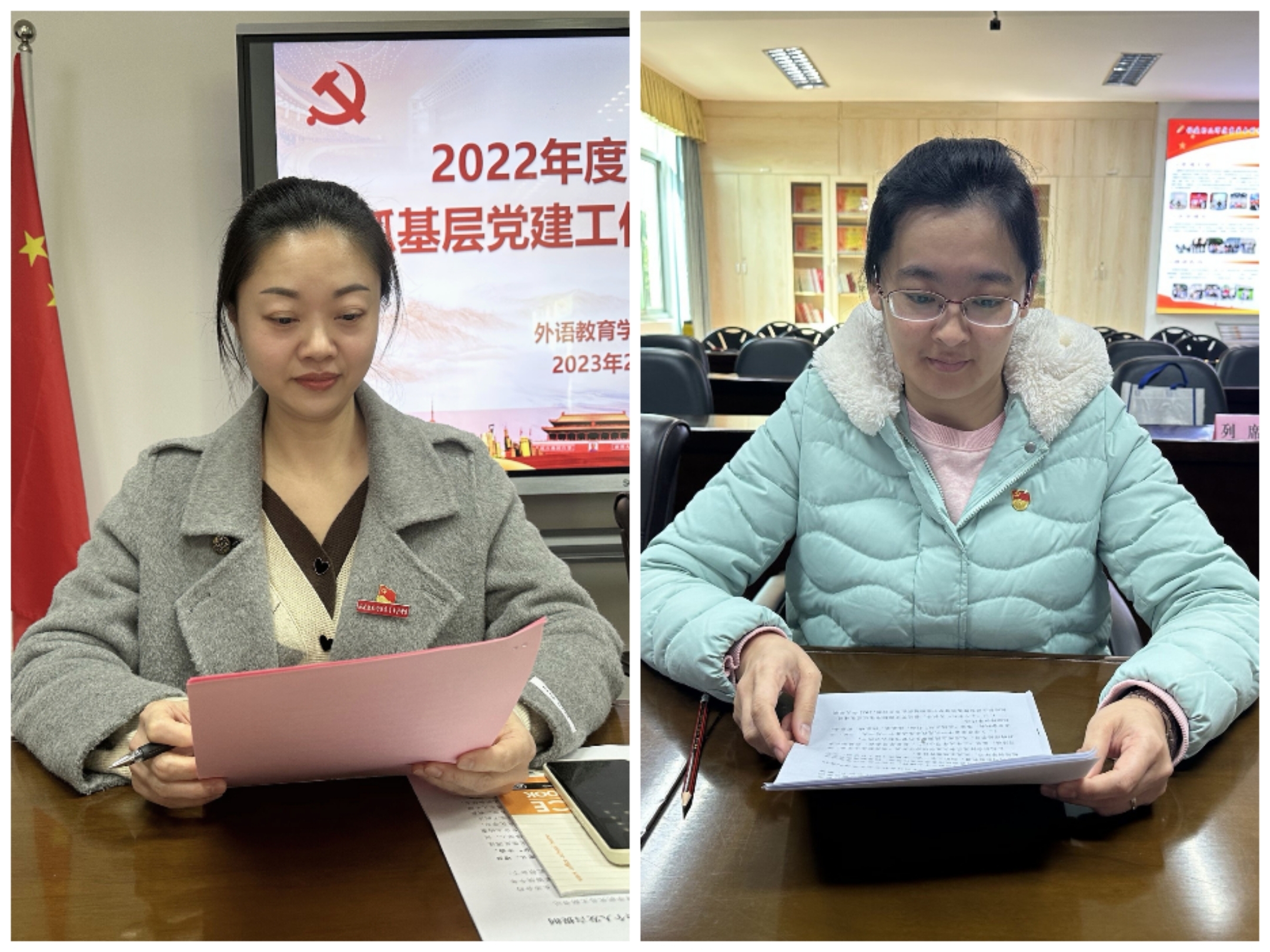 教工第一党支部书记陈文华同志、学生第一党支部书记何莹同志分别就2022年度抓党建工作情况进行述职,林祥昊书记代表外语教育学院党总支对两位支部书记的个人述职进行逐一点评,肯定优点、指出不足,并提出2023年工作建议与希望。党员教师对两位支部书记抓基层党建工作情况进行测评。