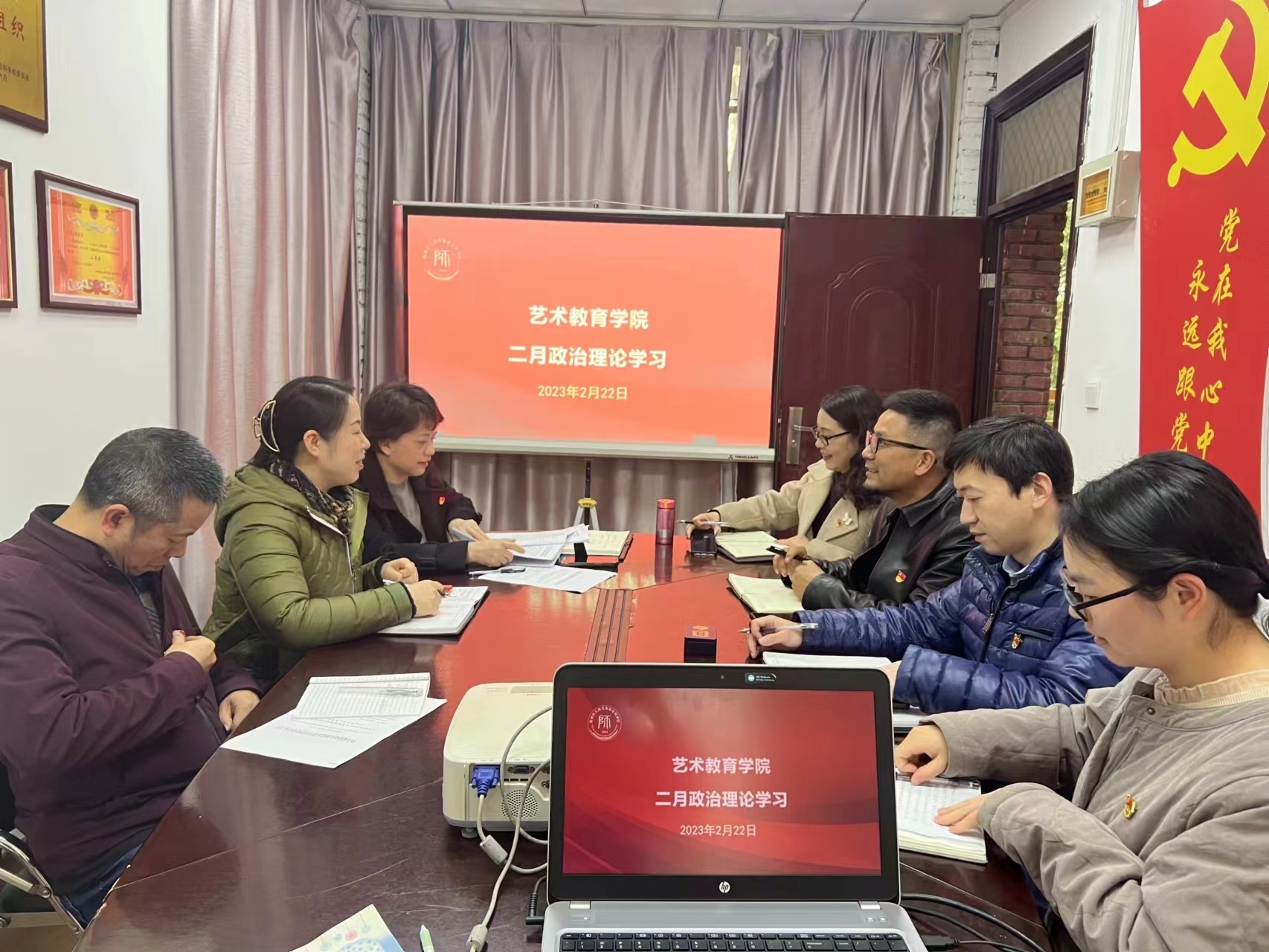 2月22日下午,艺术教育学院开展2月份政治理论学习,学院党政领导班子和支部书记参加,姜琪书记主持学习。