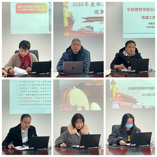 2月22日下午,学前教育学院党总支召开2022年基层党支部书记述职评议会。学院党总支委员班子、全体党支部书记参加,会议由王标书记主持。