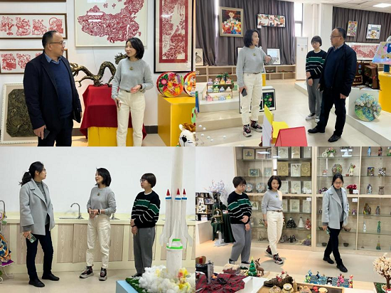 座谈会后,来宾还实地参观了实训中心的文化环境创设,林萍副院长对实训室的功能、设计理念、使用情况、实训体系等进行了详细介绍。来宾对我院实训室和实训文化给予了高度评价,特别是对学生精心设计的玩教合一、创意新颖、富有传统文化特色的玩教具给予了肯定。