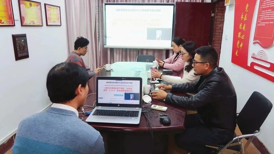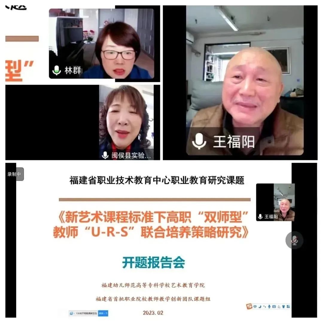 随后课题组邀请的三位专家分别做开题论证发言,福建省学校美育与艺术教育研究中心首席专家王福阳教授认为课题内容紧扣课题研究方向和目标,渐进分解逐层展开,逻辑性强,特别是在特色创新方面提出"U-R-S"联合培养模式,体现当今职业教育新理念、新作为。省美艺中心副主任、福建师大附中正高级教师林群老师指出本课题研究思路清晰,目标明确,内容充实,方法得当,实施方案可行,研究进度合理,课题研究团队力量强。闽侯县教育局副局长、闽侯实小校长、正高级教师林秀芳老师认为课题构建了"U-R-S"命运共同体,协同育人育师,深化高职艺术院校与小学艺术实践基地共赢互利的合作关系,有效对接了高校培养方向与社会及用人单位的需求。三位专家一致同意开题,并给予高位指导,建议课题研究过程中应较多的关注"以例为案、以案为鉴"的应用性案例研究,使成果更加鲜活、可信、可鉴,从而凝练出可复制可推广的教师队伍专业化发展的经验。