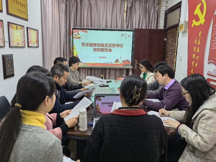 3月 1日下午,艺术教育学院党总支召开2022年度党组织书记抓基层党建工作述职会议,艺术教育学院党政班子及党总支委员、支部书记、党员代表参加会议。