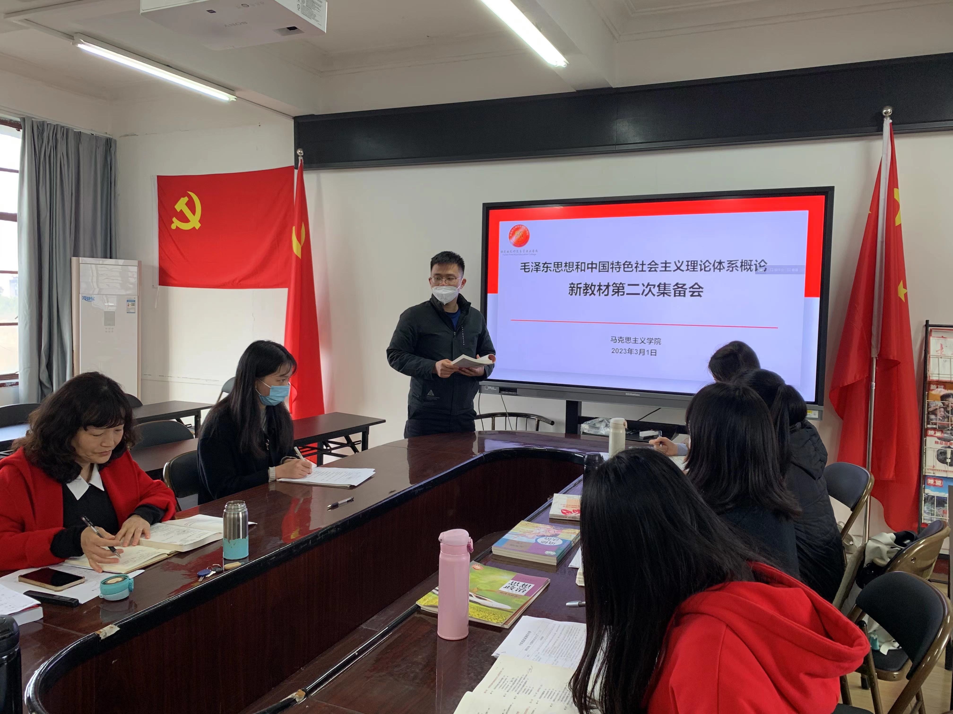2023年3月1日下午,马克思主义学院组织于会议室开展"概论"课第二次集备活动。此次集备由陈奕霖主讲,"概论"课教研室全体教师参加。