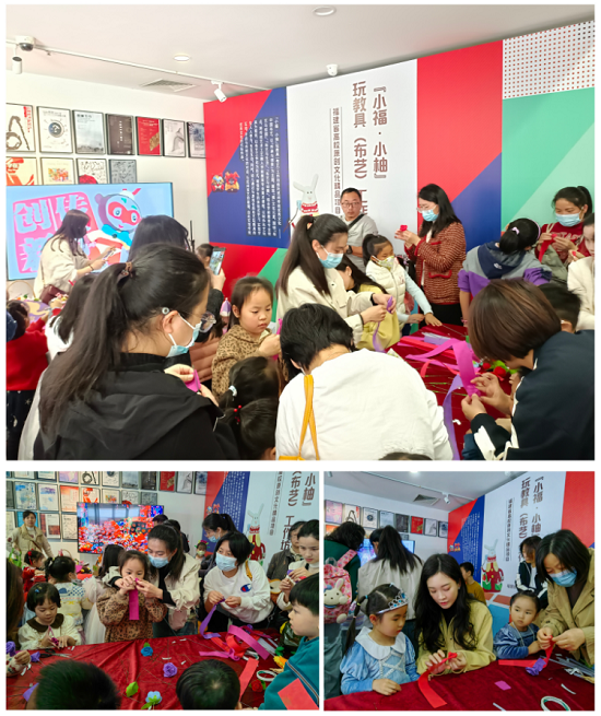 2023年3月4日,由学前教育学院院长吴丽芳教授主持的省级高校原创文化精品项目——"小福·小柚"玩教具(布艺)工作坊应邀参加由福建省美术家协会少儿美术艺术委员会主办、福建省学前美术教育研究中心协办的2023年首届厦门市幼儿园儿童作品联合展,学前教育学院美术教研室主任方琳宇副教授带领马紫君、李子筠老师参展。