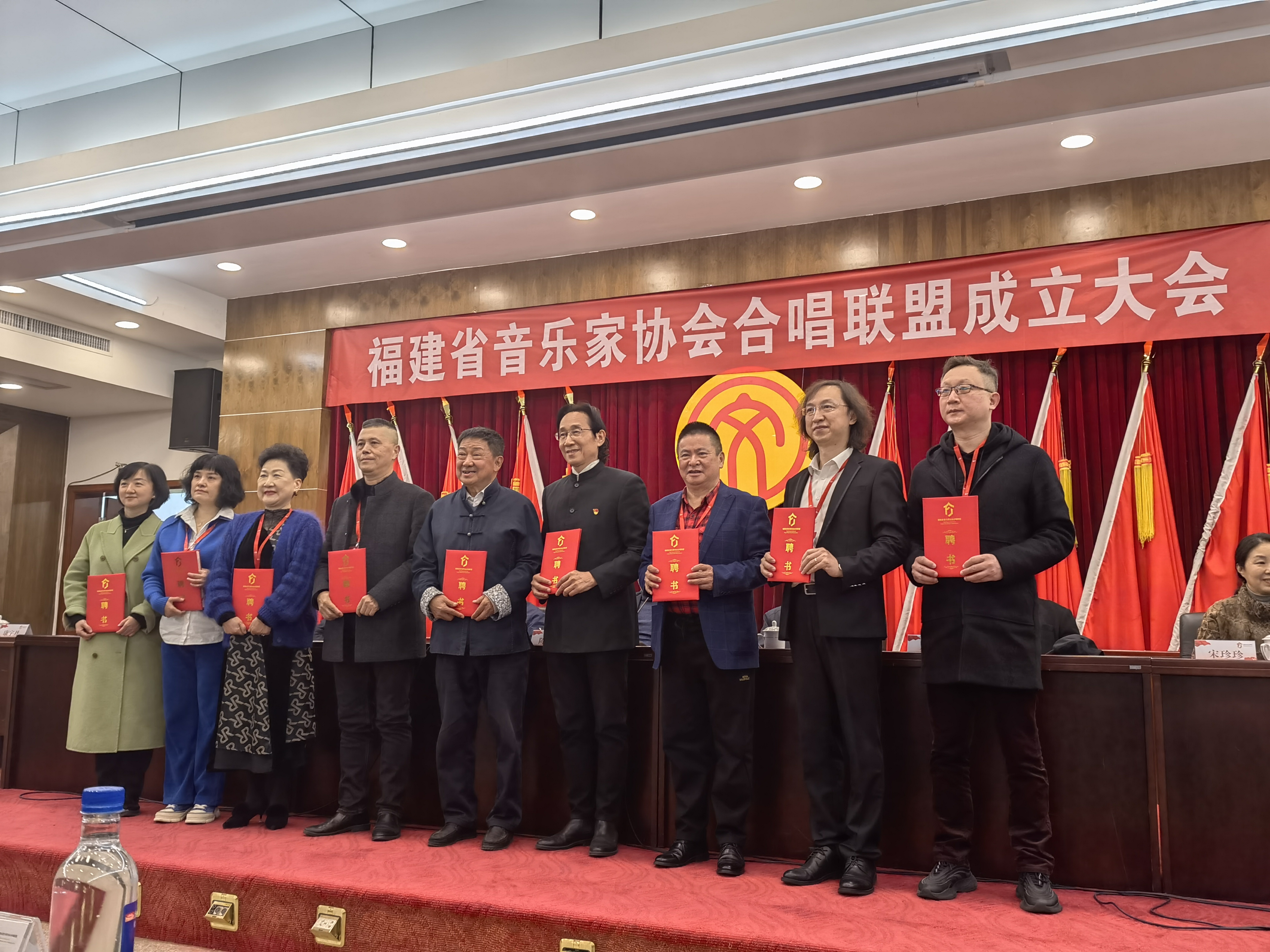 3月5日,在中国音乐家协会合唱联盟和福建省文联的关心指导下,福建省音乐家协会合唱联盟成立大会在省文联隆重召开,中国音协合唱联盟副主席李仲党,中国音协合唱联盟秘书长修骏,福建省文联党组成员、副主席、书记处书记、省作家协会主席陈毅达,福建省文联顾问、福建省协名誉主席章绍同,福建省音协主席苏力,福建省音协顾问、原福建省艺术职业学院院长张锦华等领导嘉宾,以及全省音乐界合唱工作者120余人参加。首批共有1380名个人会员、58个团体会员加入。联盟隶属于福建省音乐家协会,是非营利性质的二级学会,接受福建省文联的服务指导和监督管理。联盟坚持贯彻落实党的文艺方针及教育方针,以抓好大中专院校及中小学合唱艺术教育为主,社会群众业余合唱教育为辅,旨在全面普及与提高福建省的合唱水平,为发展新时代我省合唱事业作贡献。