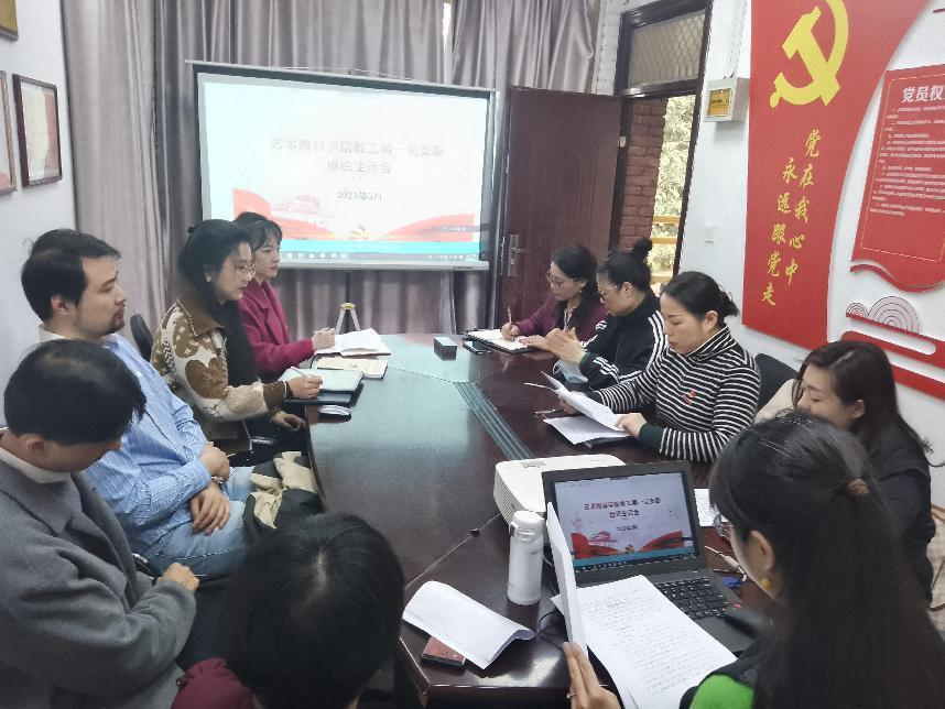 艺术教育学院教工第一党支部组织生活会现场