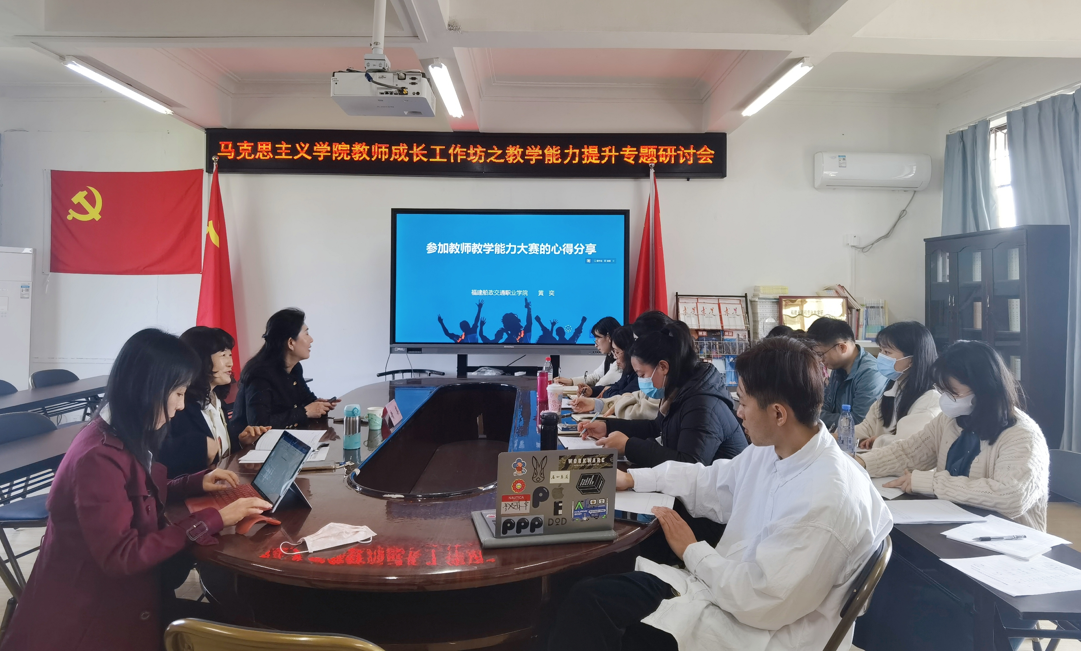 为进一步提升教师教学能力和专业素养,助推教育效果和教学质量不断提升,更好地备战2023年省职业院校教学能力比赛,3月16日上午,马克思主义学院于学院办公室举办"教学能力提升专题研讨会",此次专题研讨会是我院教师成长工作坊系列活动之一。