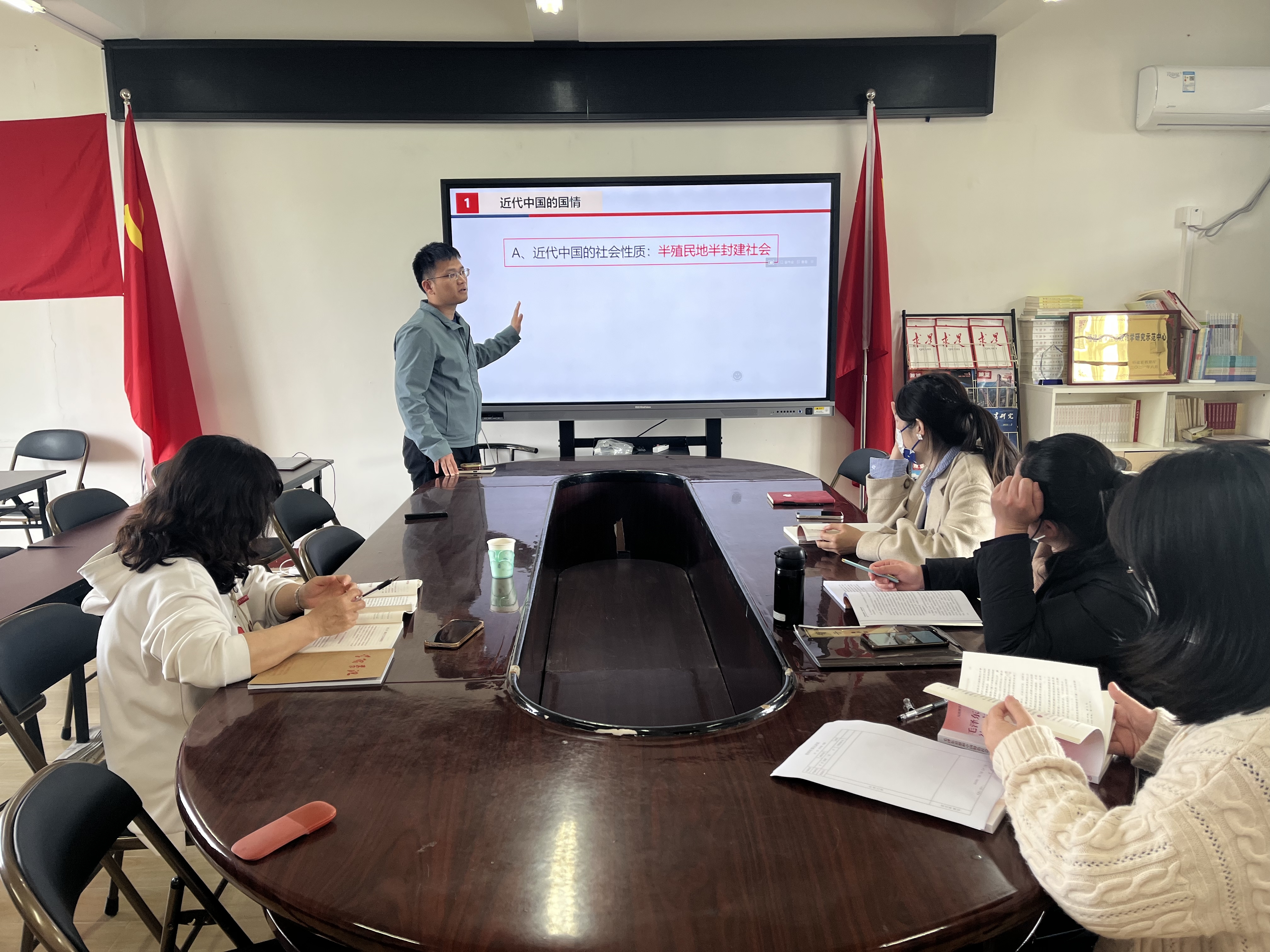 2023年3月16日下午,马克思主义学院组织于会议室开展《毛泽东思想和中国特色社会主义理论体系概论》第三次集备活动。此次集备由陈奕霖主讲。