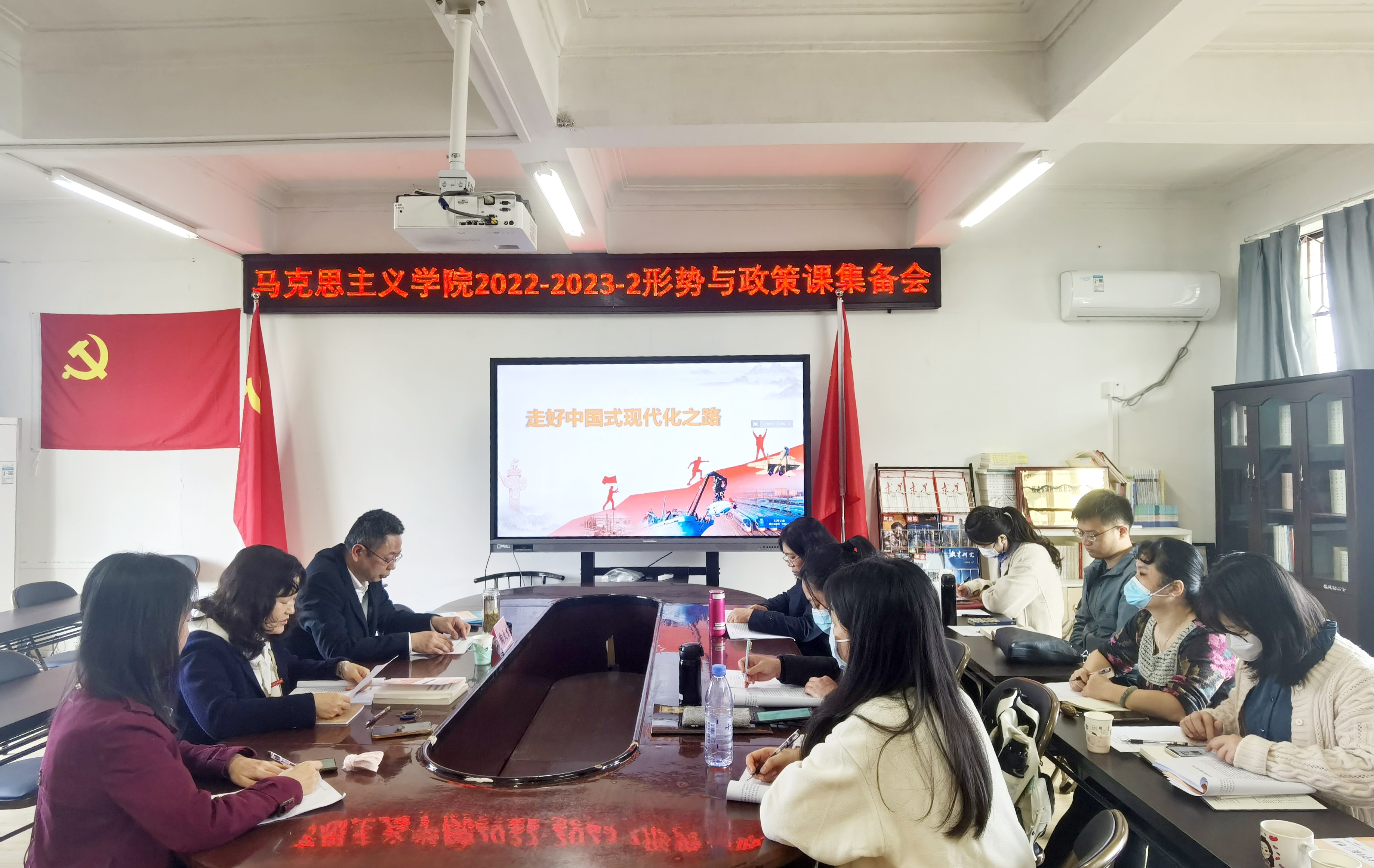 2023年3月16日下午,马克思主义学院于会议室开展本学期第一次《形势与政策》集体备课活动。此次集备邀请福州大学马克思主义学院陶火生教授主讲,伊文婷院长主持集备会,马院全体专任教师参加。