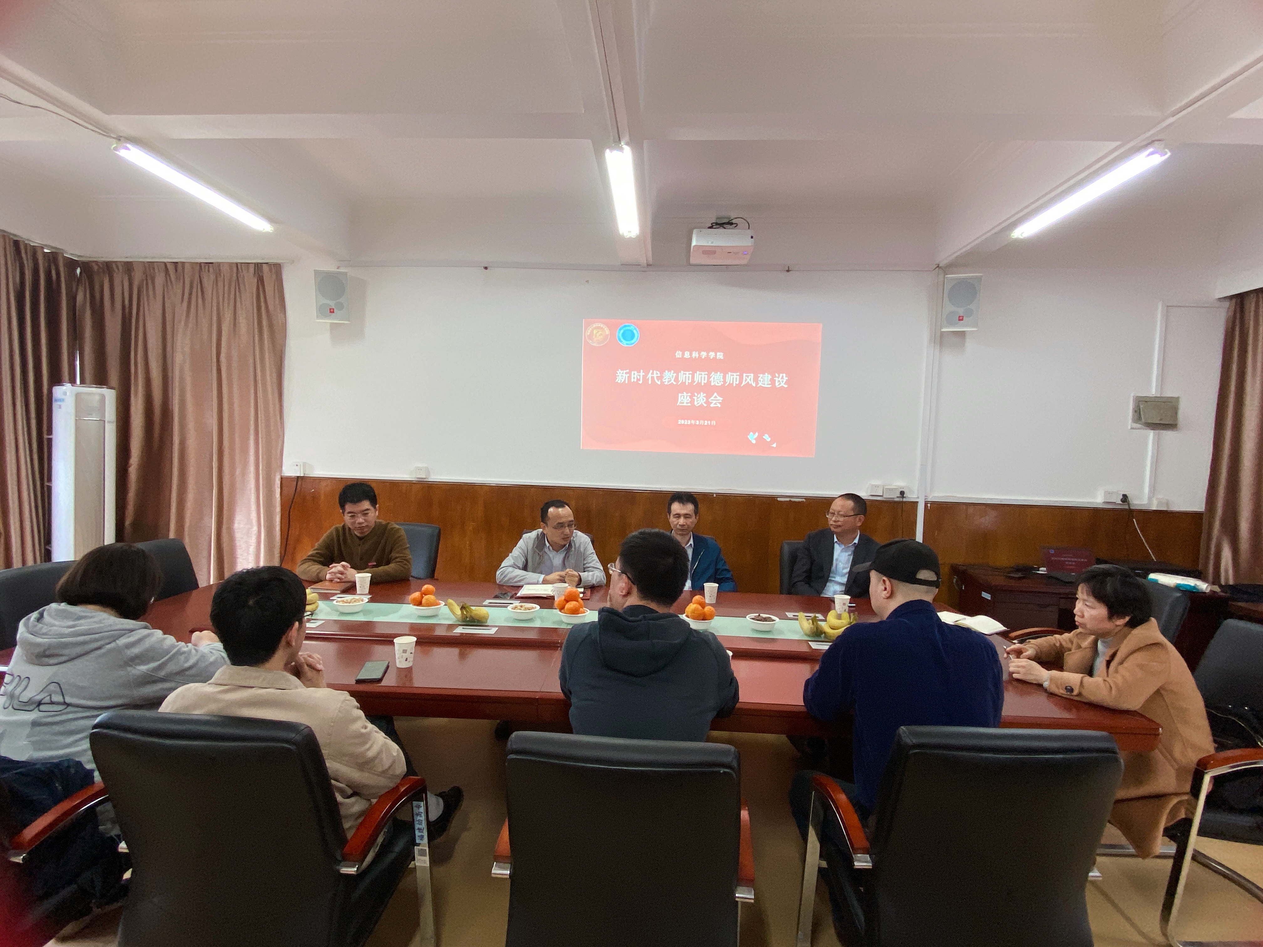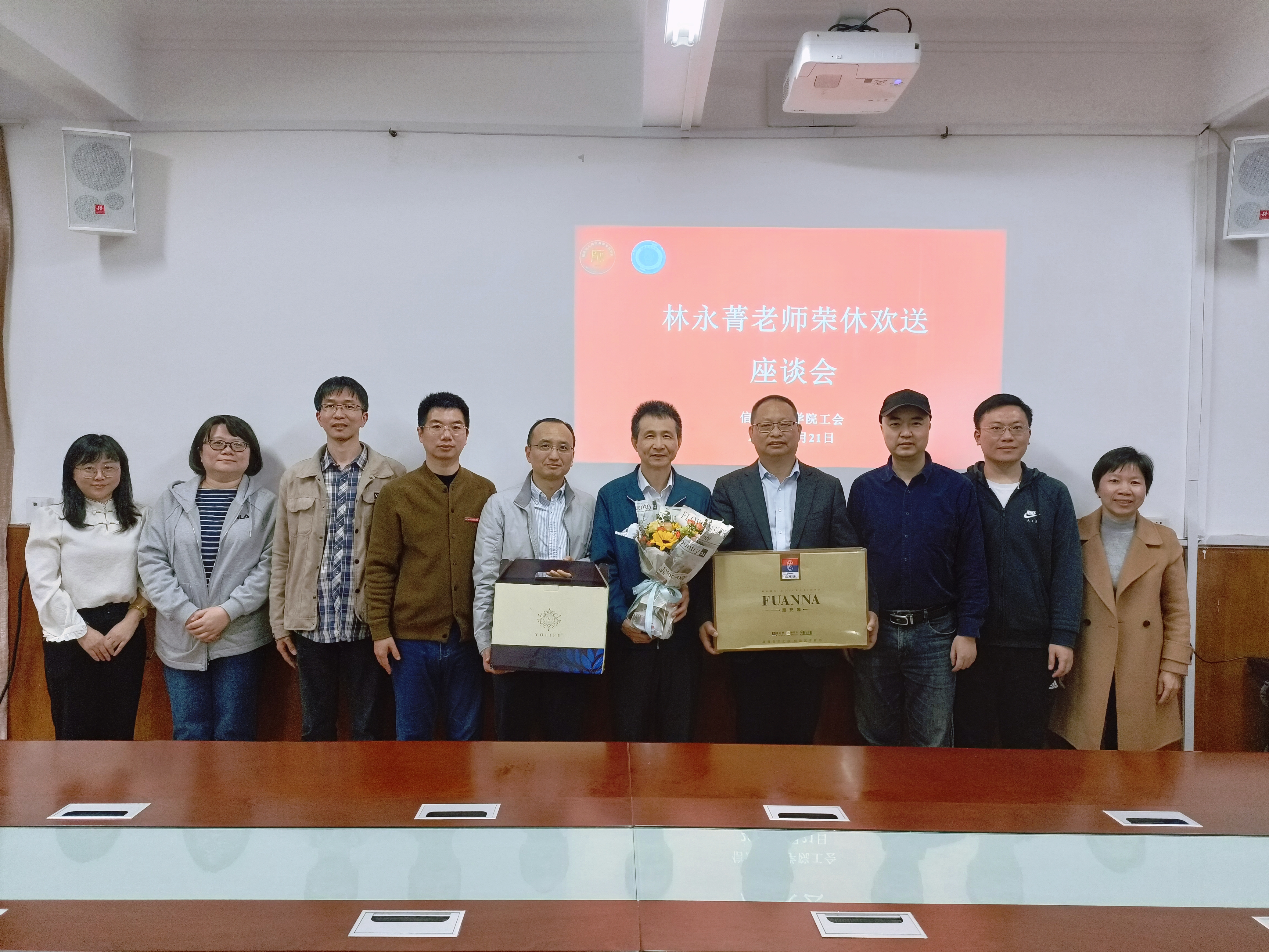 3月21日下午,信息科学学院召开新时代教师师德师风建设座谈会暨林永菁老师荣休欢送会。学院院长陈宁华、党总支书记余深焰、学院副院长、工会主席刘建炜及学院老师代表参加座谈会,会议由刘建炜副院长主持。