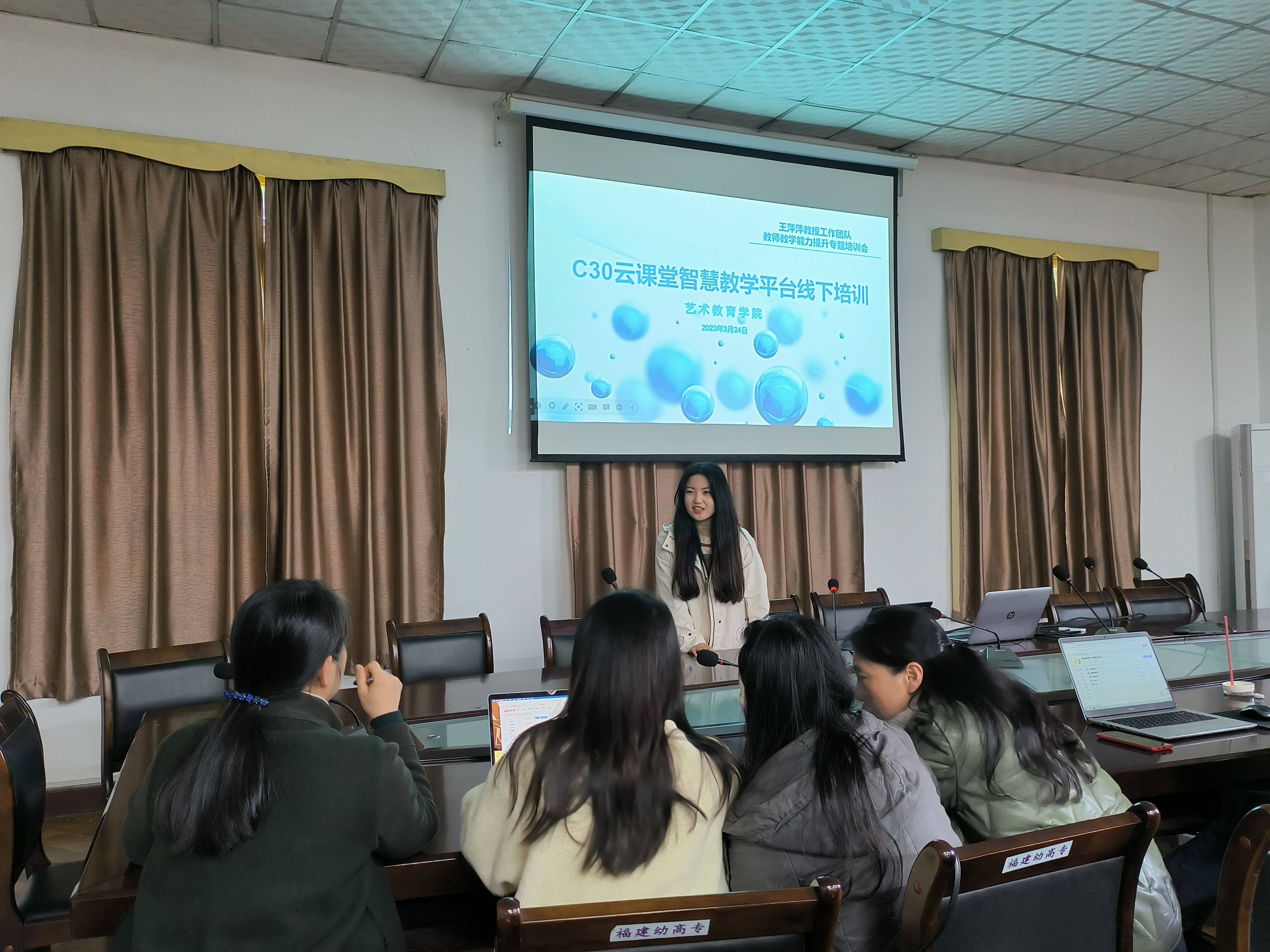 此次培训是"艺术教育专业群"福建省职业教育教师教学创新团队和王萍萍教授工作团队教师能力提升专题培训之一。培训内容丰富,务实有效,对鼓励教师运用信息化手段提升学生学习兴趣,提高教师课堂教学效率,不断提升教学质量起到了积极促进作用。学院将持续做好在线教学的保障、支持与服务工作,进一步提高我院教师教学和教学管理的信息化水平。