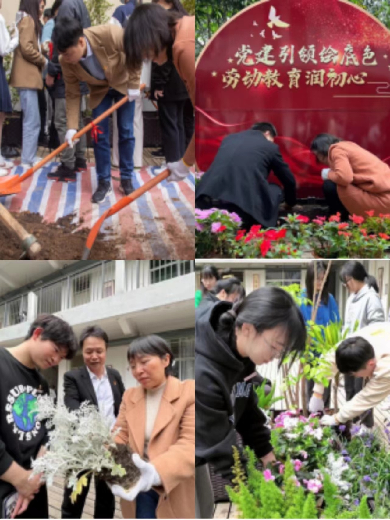 启动仪式后,人文科学学院师生有序参加种植劳动,切身感受劳动魅力。师生们紧张有序地将一棵棵树苗植入新坑、挥锹铲土、扶正苗木、装点花箱,为学院播种绿意,每一个环节都一丝不苟。辛勤劳作的师生虽有疲态,依然挡不住劳作的喜悦。学生们在体验劳动快乐的同时,用自己的双手在劳动中创造劳动成果,真正实现劳动与德智体美相互贯通、同频共振的效应,以劳树德、以劳增智、以劳健体、以劳育美,培养德智体美劳全面发展的社会主义建设者和接班人。同学们纷纷表示,此次劳动实践很有意义,在体验不一样的校园生活的同时,也能切身感受到劳动的辛苦,树立正确的劳动价值观。