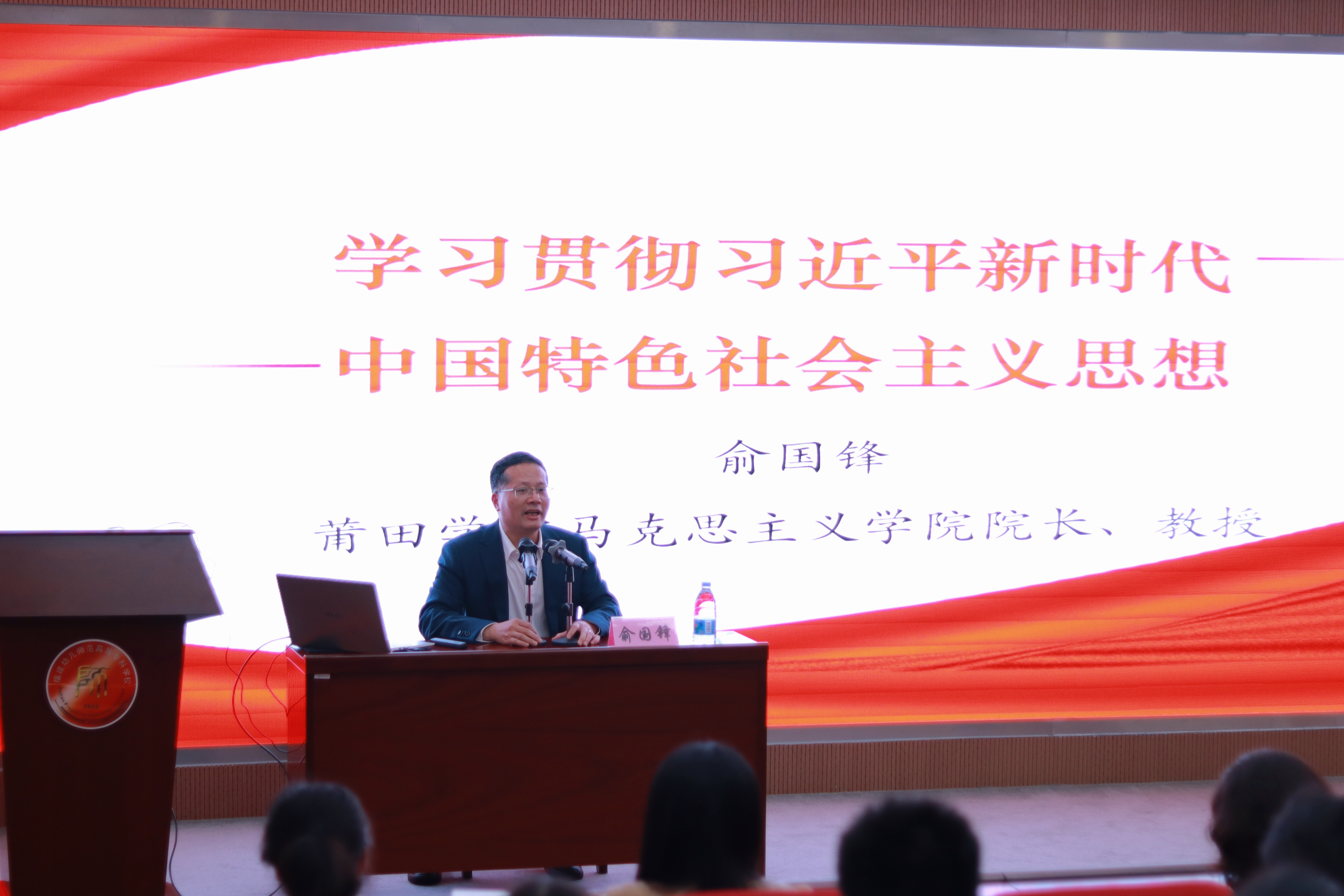 4月12日下午,马克思主义学院在综合实训楼3楼会议室举行"学习贯彻习近平新时代中国特色社会主义思想"专题讲座,莆田学院马克思主义学院院长俞国锋教授受邀做专题讲座。习近平新时代中国特色社会主义思想读书社成员、校"青马工程"培训班学员以及马院教师参加讲座。本次讲座由马克思主义学院教师胡新蕾主持。