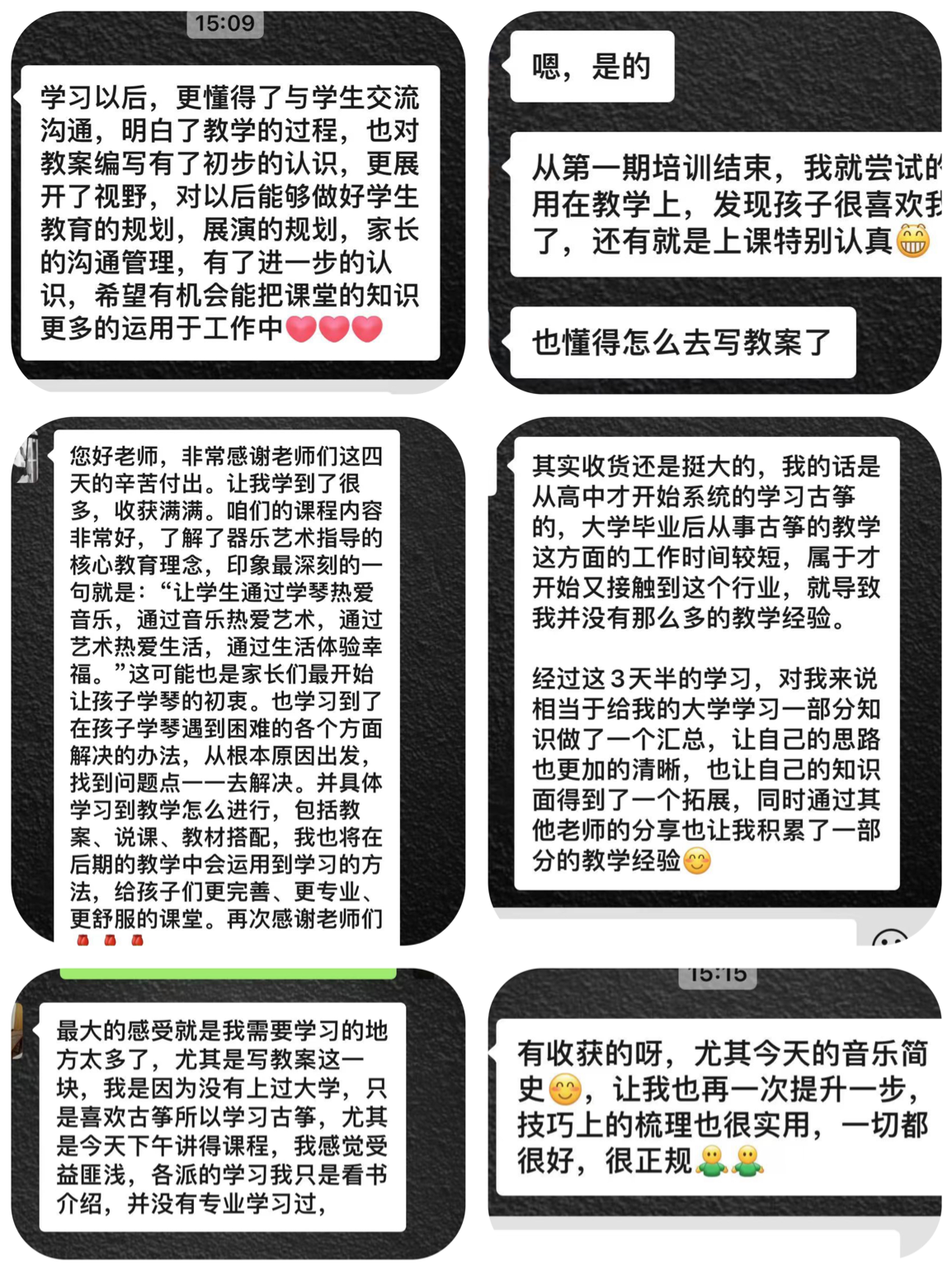 申毅老师扎实的专业技能与深入浅出的课程讲解,获得了参训教师的一致认同与高度评价。他们表示在今后的艺术教学实践中将继续深入学习和巩固器乐艺术指导理念,贯彻国家学校美育方针,为发展我国音乐教育事业、弘扬中华优秀传统文化做出贡献。