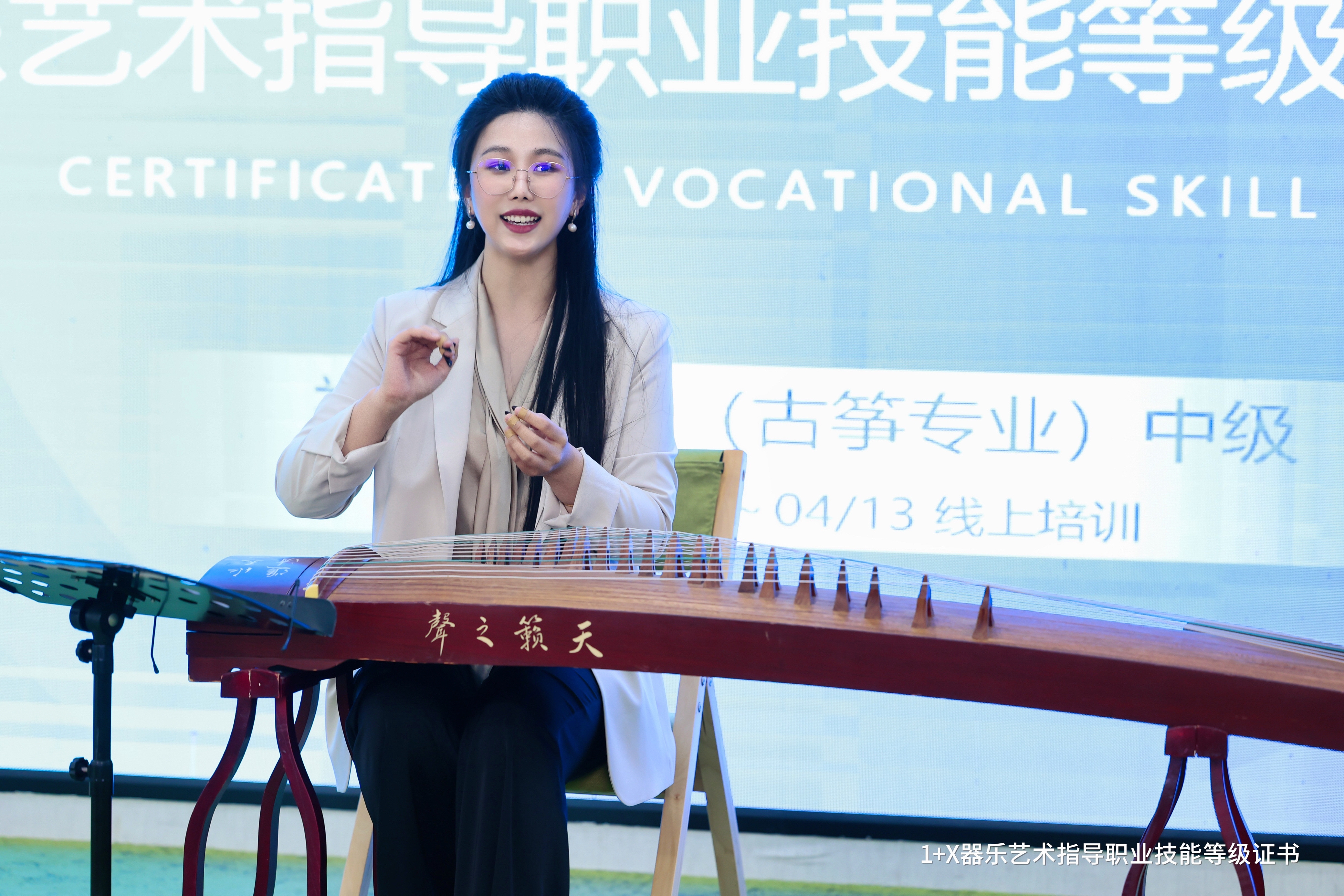 经过四天的紧张学习,参训的二十名古筝教师最终通过了线上理论机考、教案书写、教案说课、答辩与现场演奏五项考核,获得1+X器乐艺术指导(中级)职业技能等级证书。