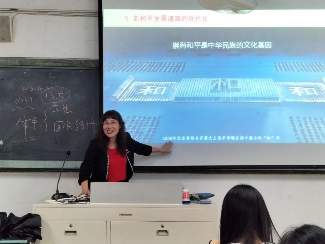2023年4月20日下午,我校党委委员、副校长陈凤玉走进教学楼A305教室,为我校学前教育学院幼儿托育2211班学生讲授"走好中国式现代化之路"为主题的形势与政策课。