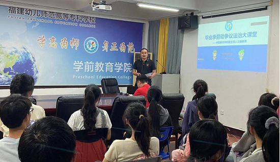 为深入学习贯彻党的二十大精神,深学细照笃行习近平新时代中国特色社会主义思想,深入贯彻落实学习贯彻习近平新时代中国特色社会主义思想主题教育"学思想、强党性、重实践、建新功"的总要求,持续推动省委"深学争优、敢为争先、实干争效"行动走深走实,2023年4月20日晚,福建幼儿师范高等专科学校学前教育学院联合福州青创以线上线下相结合的方式开展主题为"毕业季劳动争议法治大课堂"的就业育人主题教育活动,通过更好地对大学生进行就业创业指导,帮助大学生尤其是毕业生了解劳动法相关知识,避开职场合同"陷阱",为大学生的高质量充分就业创业提供一个良好的学习平台。此次活动线下由学前教育学院学生30人参加,线上共吸引学前教育学院2023届毕业生近500人参与。