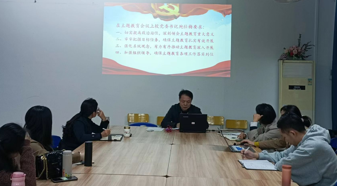 会上,王奕书记传达了《中共中央关于在全党深入开展学习贯彻习近平新时代中国特色社会主义思想主题教育的意见》《中共福建省委关于深入开展学习贯彻习近平新时代中国特色社会主义思想主题教育的实施意见》《福建省第一批深入开展学习贯彻习近平新时代中国特色社会主义思想主题教育实施方案》等上级关于开展主题教育的文件精神,并结合学校主题教育实施方案,进行了学院主题教育工作的部署。王奕书记指出:一是要认真学习领会习近平总书记的重要讲话,结合"三争"行动和校党委的工作要求,不折不扣抓好贯彻落实;二是要全面加强理论武装,坚持不懈用习近平新时代中国特色社会主义思想凝心铸魂;三是要通过深入学习更加深刻领悟"两个确立"的决定性意义,增强"四个意识"、坚定"四个自信"、做到"两个维护";四是要大兴调查研究之风,运用党的创新理论研究新情况、解决新问题、总结新经验;五是要把问题整改贯穿主题教育始终,奔着问题去、带着问题学、对着问题改。他要求全体教师党员同志,结合主题教育,在"三教改革"、人才培养、育人工作上真抓实干,动真章、见实效,以推动学院高质量发展取得新成效检验主题教育成果。