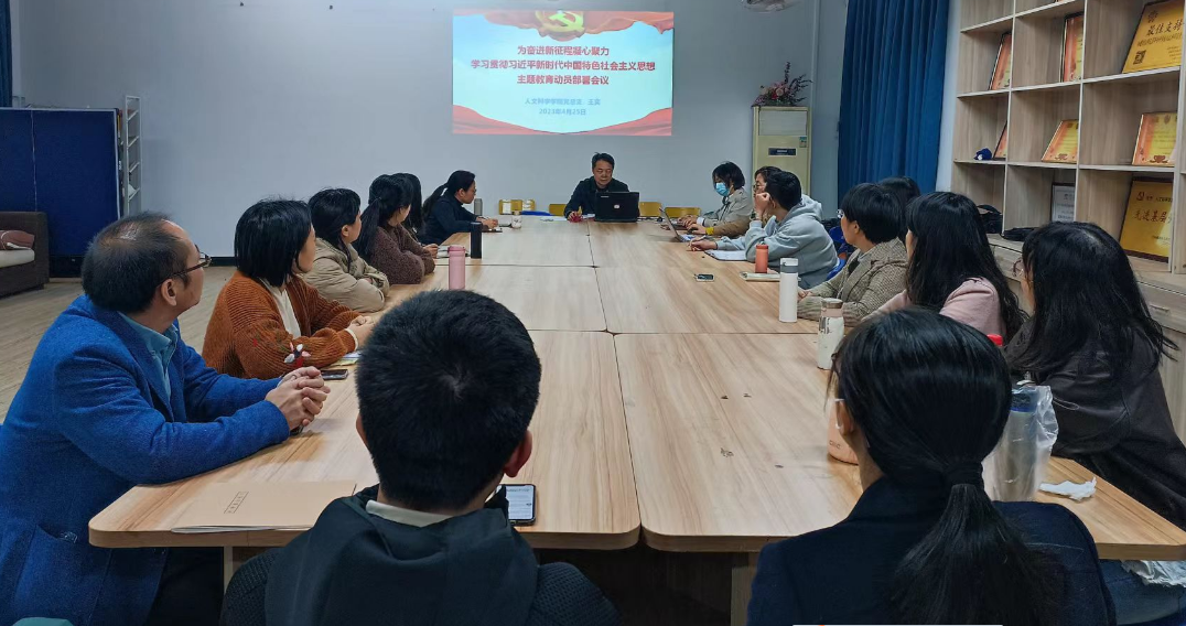 2023年4月26日,人文科学学院召开学习贯彻习近平新时代中国特色社会主义思想主题教育动员部署会议,王奕书记主持会议并作动员讲话,全体党员参加会议。