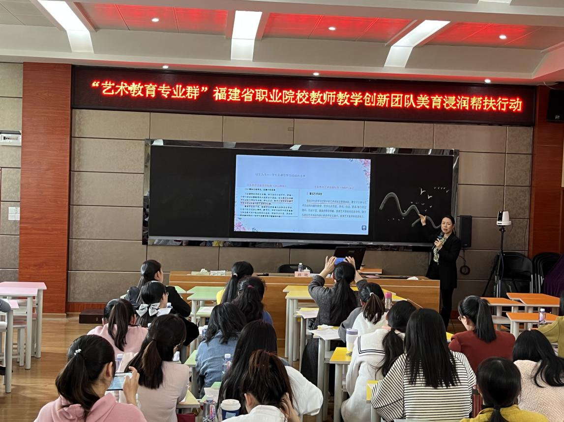 我校充分发挥设于我校福建省学校美育与艺术教育研究中心的省级美育研究平台优势,以及"艺术教育专业群"福建省职业院校教师教学创新团队、王萍萍教授工作团队的资源优势,校所团队协同推进福建省美育浸润行动的实施与落地,有效彰显示范引领与辐射作用,有力推进产教深度融合,校校双融双促助推"双师型"教师队伍成长,为进一步深化新时期义务教育美育教学改革,推进全省义务教育的优质均衡发展贡献了力量。