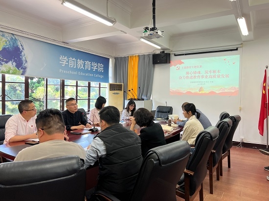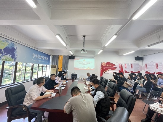 5月10日,学前教育学院党总支组织开展学习贯彻习近平新时代中国特色社会主义思想主题教育专题学习暨主题教育工作再部署会议,学院党政领导班子、全体党员参加会议。