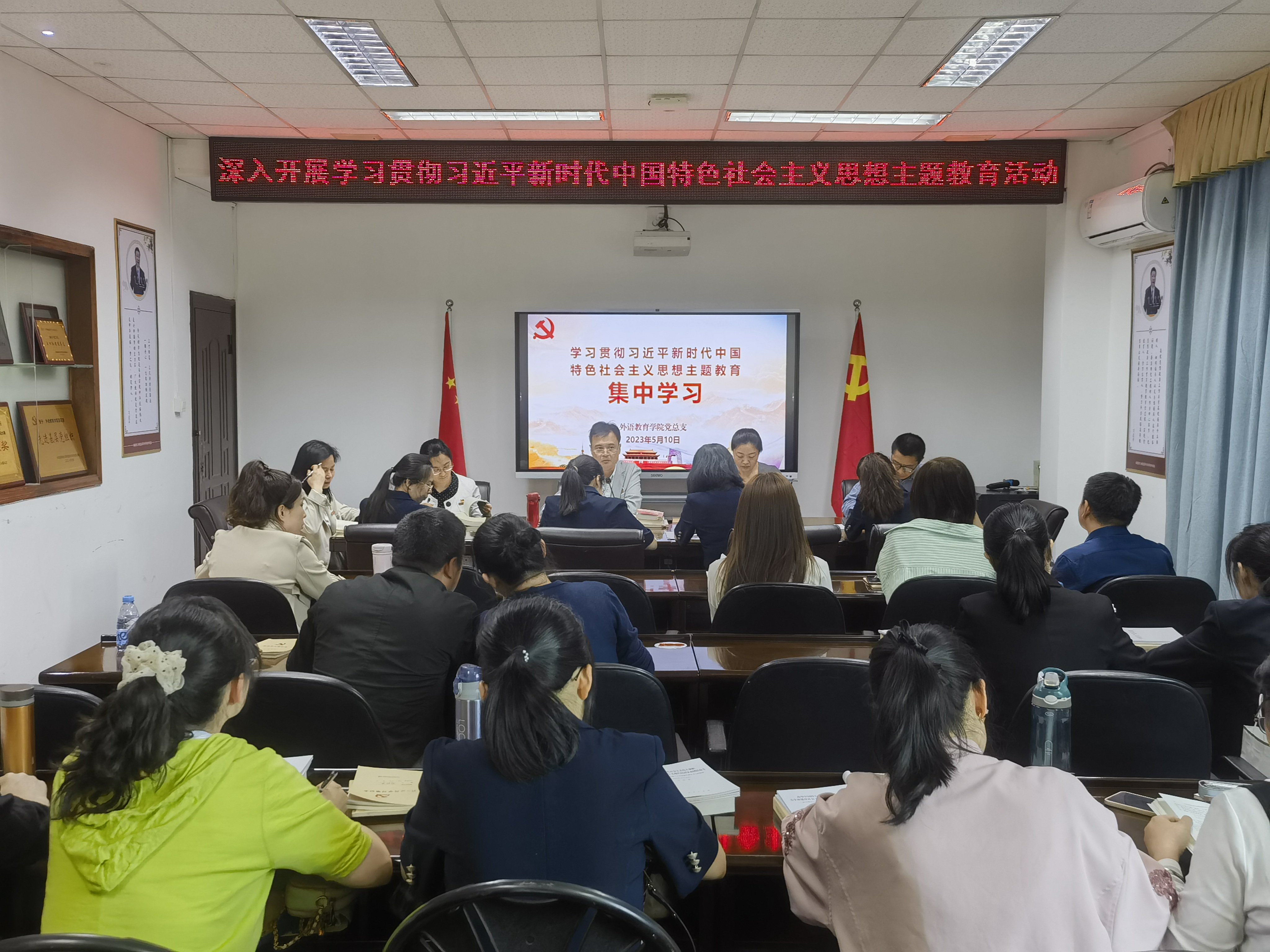 5月10日下午,外语教育学院党总支组织召开深入学习贯彻习近平新时代中国特色社会主义思想主题教育集中学习,全体党员参加,林祥昊书记主持。