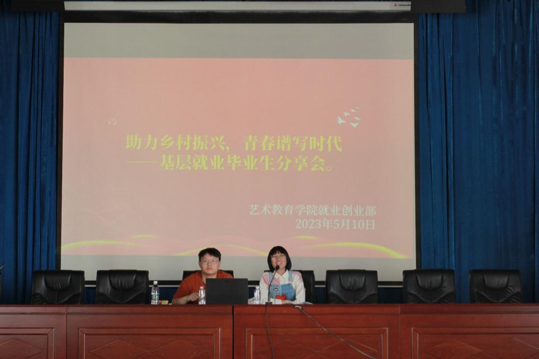 为深入开展学习贯彻习近平新时代中国特色社会主义思想主题教育,以及职业教育活动周活动,积极引导和鼓励职教学生到基层就业,让青春之花绽放在祖国最需要的地方,5月10日,艺术教育学院举办职业教育活动周系列活动——《助力乡村振兴,青春谱写时代》就业育人分享会。分享会邀请了学院2018届优秀毕业生、2023年第四届"寿宁青年五四奖章"获得者巫林玲主讲,学院负责就业创业工作的陈锋华老师主持本场讲座。