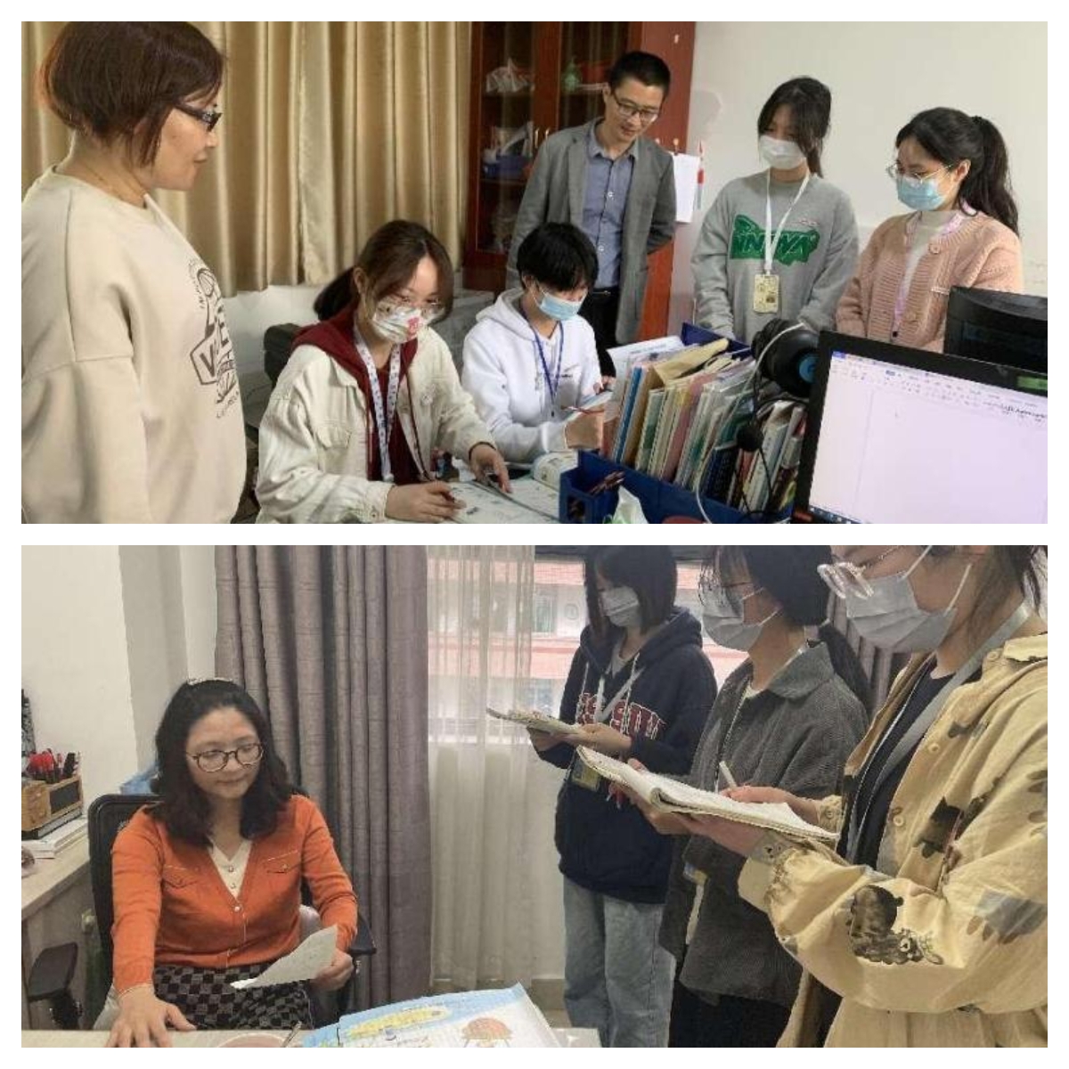 双方就学生实习表现、工作能力、专业建设、产教融合、人才培养等方面进行了深度交流。学院老师们亲切地与朱文梅唠家常,了解她在小学的实习、工作、生活情况以及下一步升学的想法等。老师们看到她在实习中能够快速成长,都感到非常欣慰,鼓励她继续端正态度,明确目标,努力奋斗;朱文梅同学向学院表达了真诚的感谢,认为学院在课程设计、教育实践、学生管理等人才培养工作上真正做到了以学生为本,重在培养学生的教师职业素养与技能,效果显著;教导主任杨茜、英语教研组长黄君临、指导教师翁蓉充分肯定朱文梅同学的表现,特别是她的教学基本功,认为她具备了成为一名合格小学英语教师的素养与能力。
