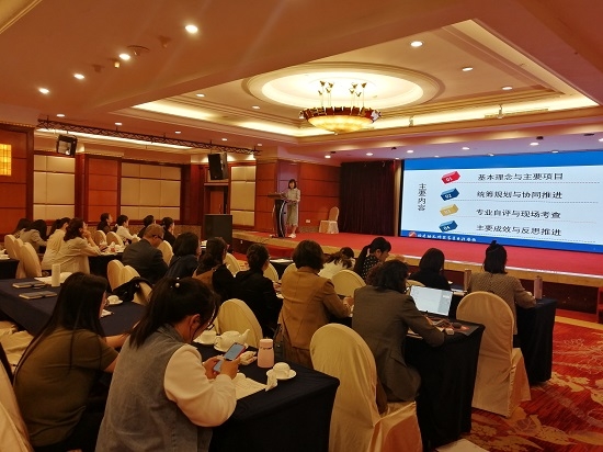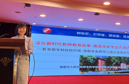 5月13日下午,我校学前教育学院院长吴丽芳教授应邀在会上做了题为"深化新时代教师教育改革 推进学前专业内涵式发展——教育部专科院校打样 学前专业师范二级认证体会与反思"的专题报告。报告围绕基本理念与主要项目、统筹规划与协同推进、专业自评与现成考查、主要成效与反思推进等四个方面对我校学前教育专业认证工作经验进行了介绍,分享受到了在座专家、同行的充分肯定。我校学前教育专业是教育部首个专科层次的师范专业认证试点单位,为全面推开三级五类的师范类专业认证体系起到了专科开路先锋作用。本次专业认证经验的分享交流有助于同类院校相关专业借鉴经验、做好专业建设与专任认证筹备工作。