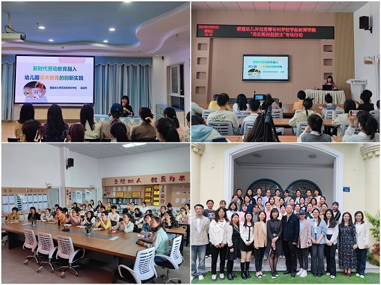 2023年4月26日—4 月28日,省级高校原创文化精品项目——"小福·小柚"玩教具(布艺)工作坊入园参加由厦门海沧蓝月湾幼儿园、莆田仙游鲤中实验幼儿园举办的艺术展演活动,学前教育学院院长吴丽芳教授带领青年教师汪琳钰、许文鹏、翁静和秘书孙晏、辅导员高瑜玲等参加活动,并作题为《新时代劳动教育融入幼儿园美术教育的创新实践》的专题讲座。此次工作坊展演活动依托中国民间传统布艺文化,以"传承与创新"为主题,结合国家级非物质文化遗产"厦门珠绣"、莆田市非物质文化遗产"书峰青黛印染技艺"共同打造独具地域特色的"福"文化IP,受到当地幼儿园广泛关注。本次展出的布艺玩教具作品均以"福"文化为载体,以形象生动的"小福·小柚"IP为品牌特色,将造型夸张、色彩鲜艳、玩法有趣的虎头帽、儿童绘本等布艺玩教具作品融入幼儿园日常游戏活动,引导幼儿通过欣赏触摸、动手操作、游戏体验等方式,感受"福"文化的精神内涵,开启与传统文化的对话、与民间技艺的碰撞,实现对中国优秀传统文化的代际传承。