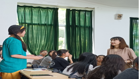 随后,傅婉霏主任从薪资待遇、社会认知和行业规范等方面结合实例与同学们现场探讨"社工的阵痛",引发了大家积极讨论与发言,号召大家共同推动社会工作行业专业化发展,与乐志社工一起秉持"这个世界会好的"的服务理念,实现"用爱点燃希望,用专业深化服务"的愿景。在互动环节中,同学们踊跃提问,现场氛围热烈。傅婉霏主任根据同学们的困惑给予解答,让同学们对社会工作有更深入的了解。