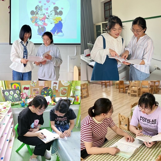 三、互动研讨,多向交流。校内指导老师利用下园的机会与园所指导老师同步参与学生的教学过程,在日常听课的过程中逐步推进学生的教学素养提升,结合线上形式实时沟通实践操作过程中的疑惑不解,形成三方联动场域,加强双师之间的彼此联系。