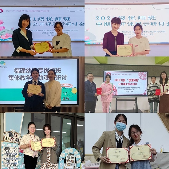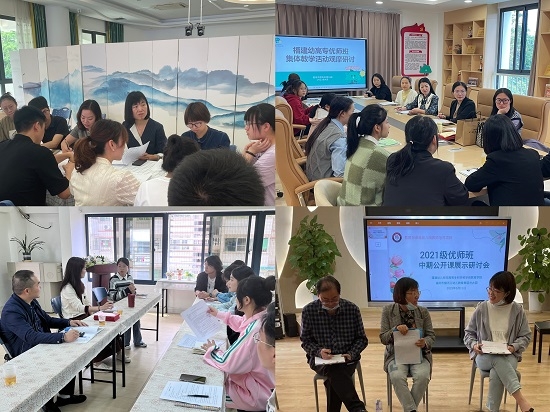 为深入贯彻习近平总书记关于职业教育的重要指示精神,落实《中华人民共和国职业教育法》《关于深化现代职业教育体系建设改革的意见》等文件的相关内容,我院持续深化人才培养改革,并在今年5月14日-20日职业教育活动周期间,积极开展了丰富的职教活动来体现专业建设的各阶段成果。优师班项目作为我院提升职业教育质量的手段之一,5月中旬也根据职教周"技能:让生活更美好"的主题在福建省直机关幼儿园、福州市直机关幼儿园、福州市花巷幼儿园、福州市旗汛口幼儿园等基地园开展"2021级优师班模块化教改成果展示活动",以期强化学生教育教学技能,加深校园双师之间联系与沟通的同时,以该活动形式为载体体现我院模块化教学改革的成效。福建幼儿师范高等专科学校学前教育学院院长吴丽芳、福建省直机关幼儿园张美洁园长、福州市直机关幼儿园黄凡园长、学前教育学院副院长肖英娥、各位校内指导老师、各园指导老师和2021级优师班学生参与了本次模块化教改成果展示活动。