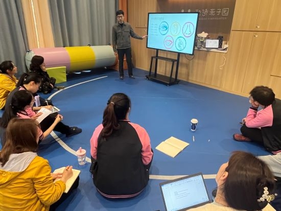 下工作站教师发挥自身的专业优势,面向一线教师开设了《前庭器官及前庭功能训练》讲座,解答了教师们在实践中对于如何识别前庭功能失调的婴幼儿的困惑,并为园所后续的活动设计和家长指导提供了思路,充分发挥我校学前教育资源优势服务幼儿园发展的作用。
