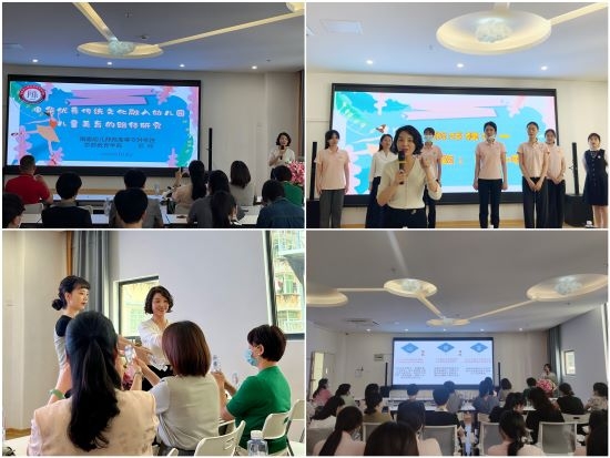 5月18日,为帮助幼儿园更好把握幼教改革中儿童美育活动的开展和成果展示,林萍副院长在三明市实验幼儿园东安分园作《中华优秀传统文化融入幼儿园儿童美育的路径研究》专题讲座,讲座采用"互动参与式"实践工作坊的形式,以"传承文化和创新路径"为主题,通过与柯咏老师进行律动游戏的教学展示,邀请与会老师们参与实践互动和现场交流,展示了幼儿律动游戏与中华优秀传统文化的有机融合路径。讲座得到在座老师们的一致好评,与会老师们感言打开了视野拓展了思路,契合让幼儿在"玩中学",培养幼儿具有创新创造力的幼儿园课程理念,老师们表示这个教学路径可以运用到今后的实践中。我院通过专题讲座和工作坊活动示范辐射教学改革的理念和研究路径,助力幼儿园课程建设和师资能力提升,为促进学前教育高质量发展贡献专业力量。
