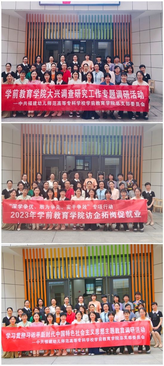 为深入学习贯彻习近平总书记有关职业教育的重要指示精神,彰显我院职业教育社会发展成效,精准助力就业实践,2023年5月18至19日,学前教育学院陈孟增副书记、林萍副院长,带领青年教师杜晨阳、柯咏、辅导员高瑜玲等5位老师分赴三明市实验幼儿园东安分园、小焦幼儿园、红印山一号人才驿站开展"访企拓岗促就业"专项行动。三明市实验幼儿园王映雪园长、三明市实验幼儿园东安分园官旭珍园长、三明市三元区公办幼教集团连秀明园长、三元区列东实验幼儿园徐慧娟园长等数位园长,以及东安分园一线老师三十余人参加了本次活动。活动由三明市实验幼儿园王映雪园长主持。