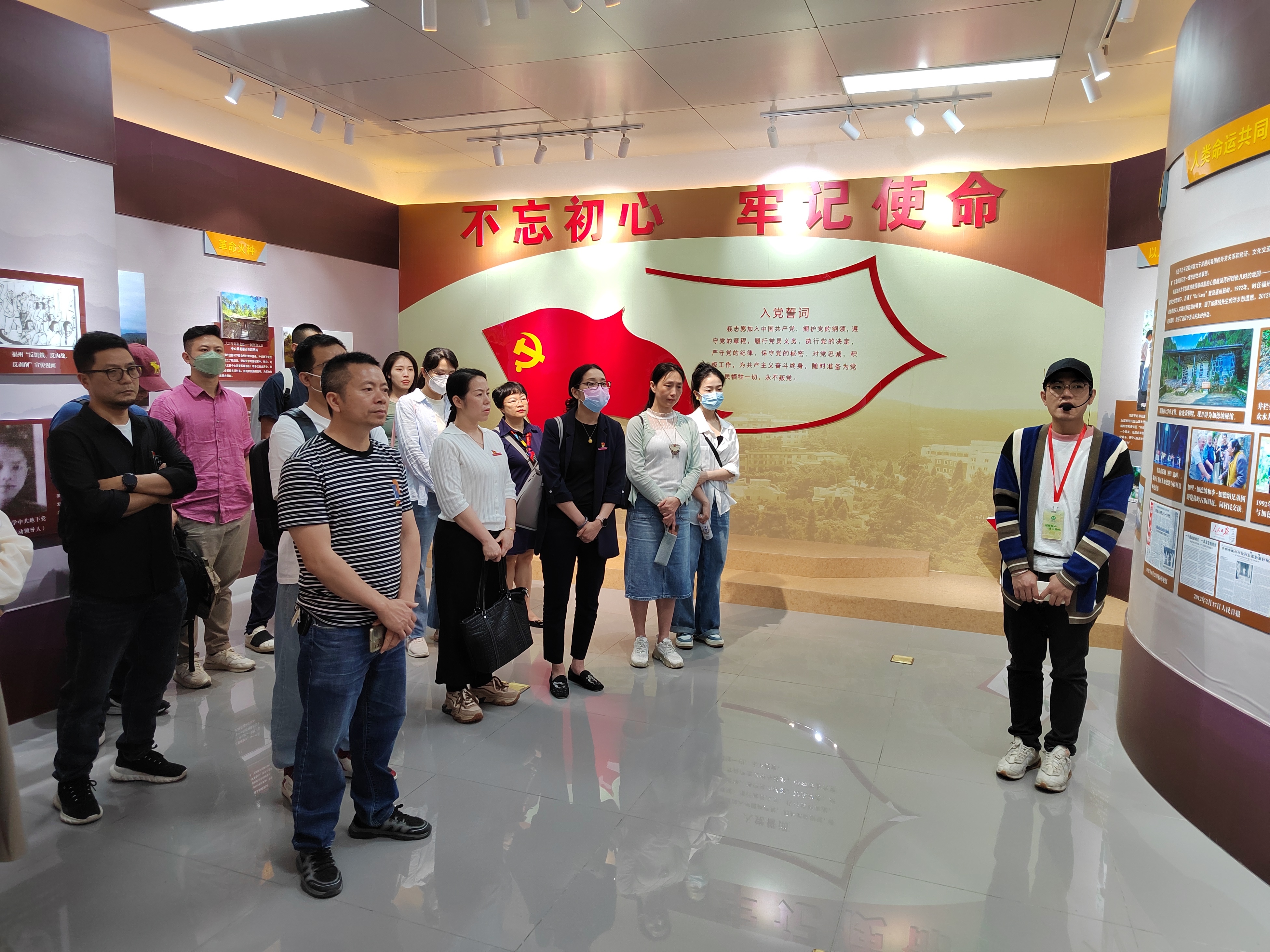 在讲解员的引导下,全体党员参观了馆内"薪火相传毓理念""红色领航信天游""学习铸就强国梦"等六个展厅,了解鼓山鼓岭的红色历史、自然文化遗产、加德纳和鼓岭演绎的中外友好故事、摩崖石刻等历史,讲解员重点讲述了习近平总书记在福建、福州工作期间留下的宝贵精神财富,全体党员身临其境地接受了习近平新时代中国特色社会主义思想主题教育,感受习近平总书记"从小处着手"为民办实事的生动事迹。