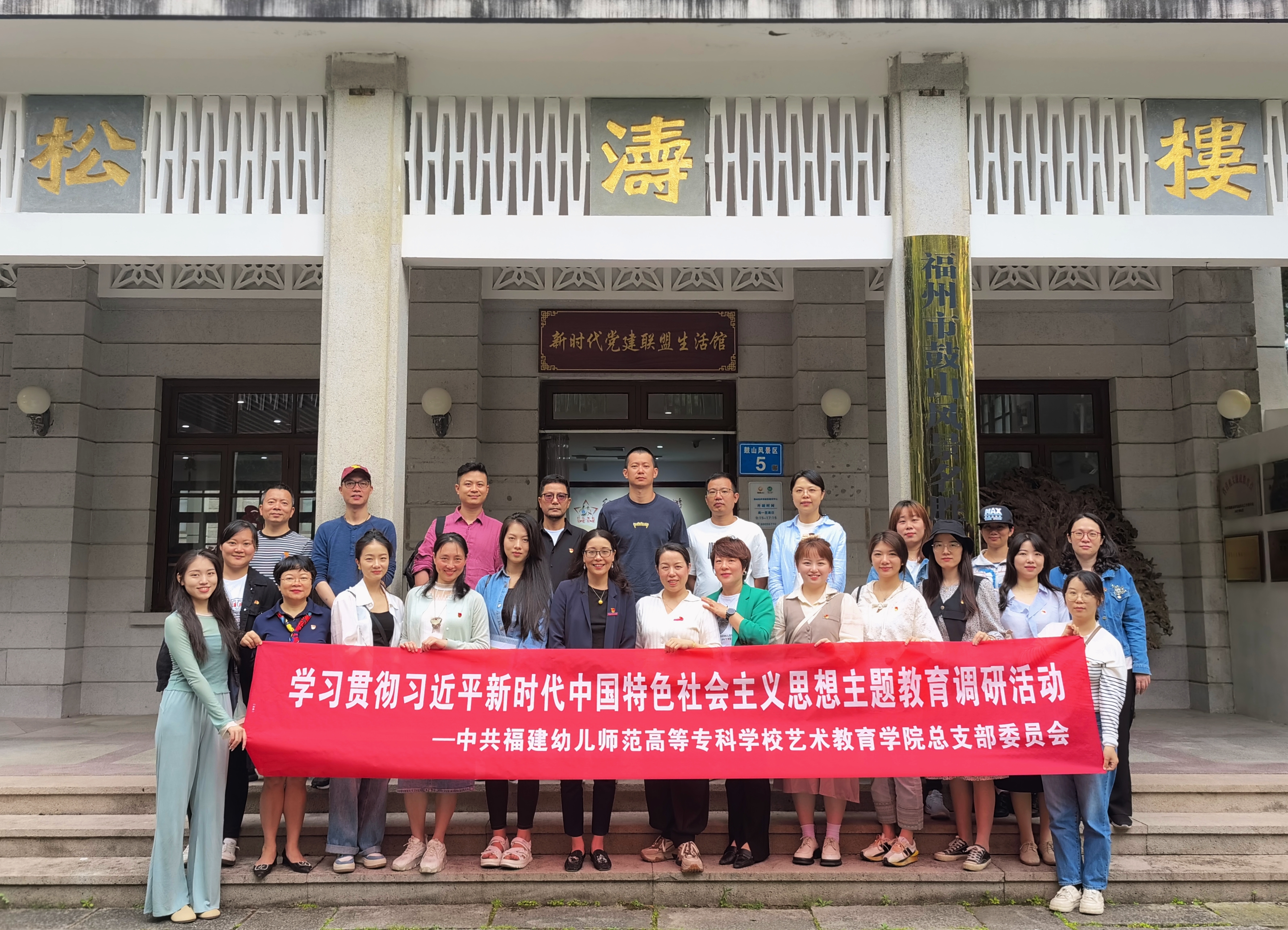 为深入开展学习贯彻习近平新时代中国特色社会主义思想主题教育,贯彻党的二十大精神,5月24日下午,艺术教育学院党总支组织全体党员教师前往鼓山鼓岭新时代党建联盟生活馆开展"追寻领袖足迹,强化思想引领"主题党日活动。