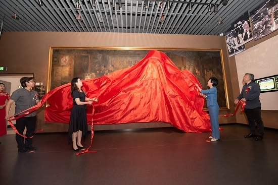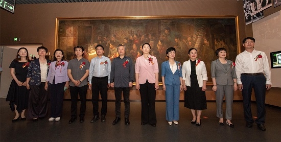 杨幼梅副教授与嘉宾在作品《万人空巷》前合影