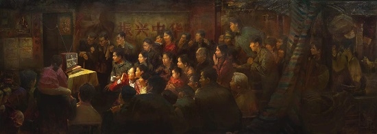 王裕亮 杨幼梅《万人空巷》油画700x250cm 2022-2023年